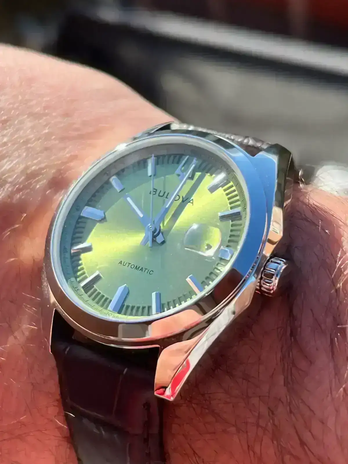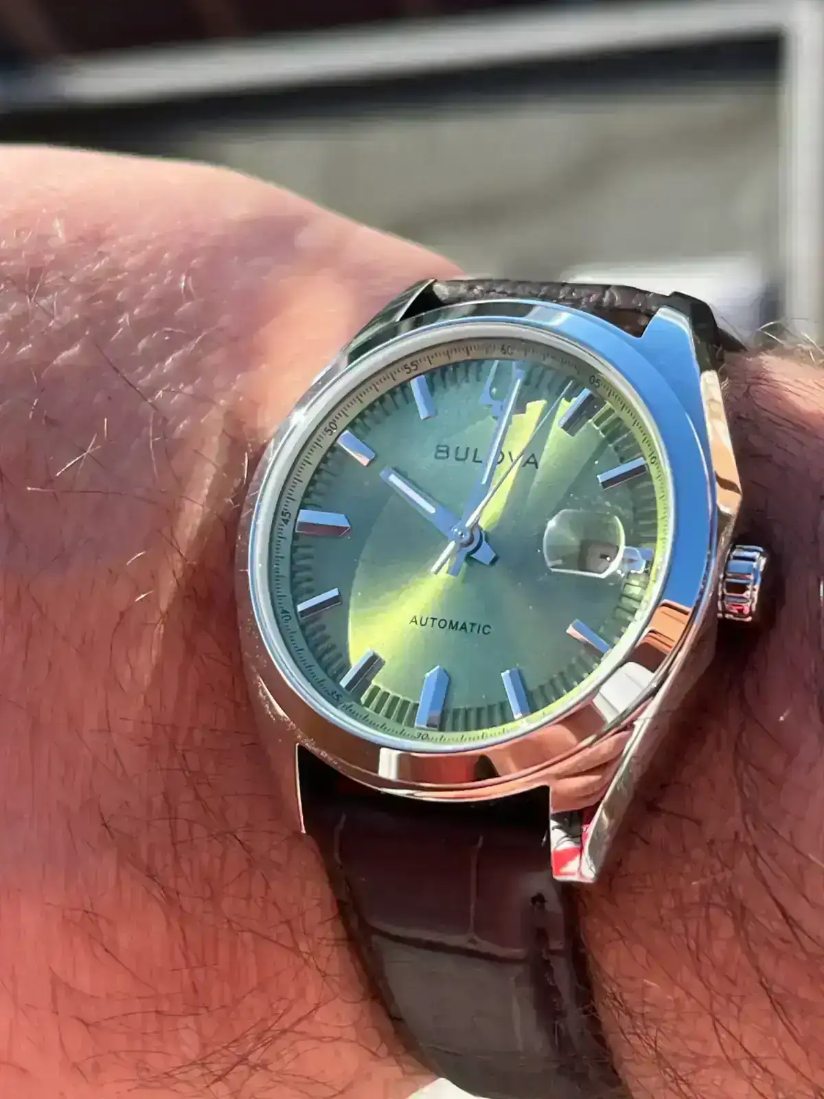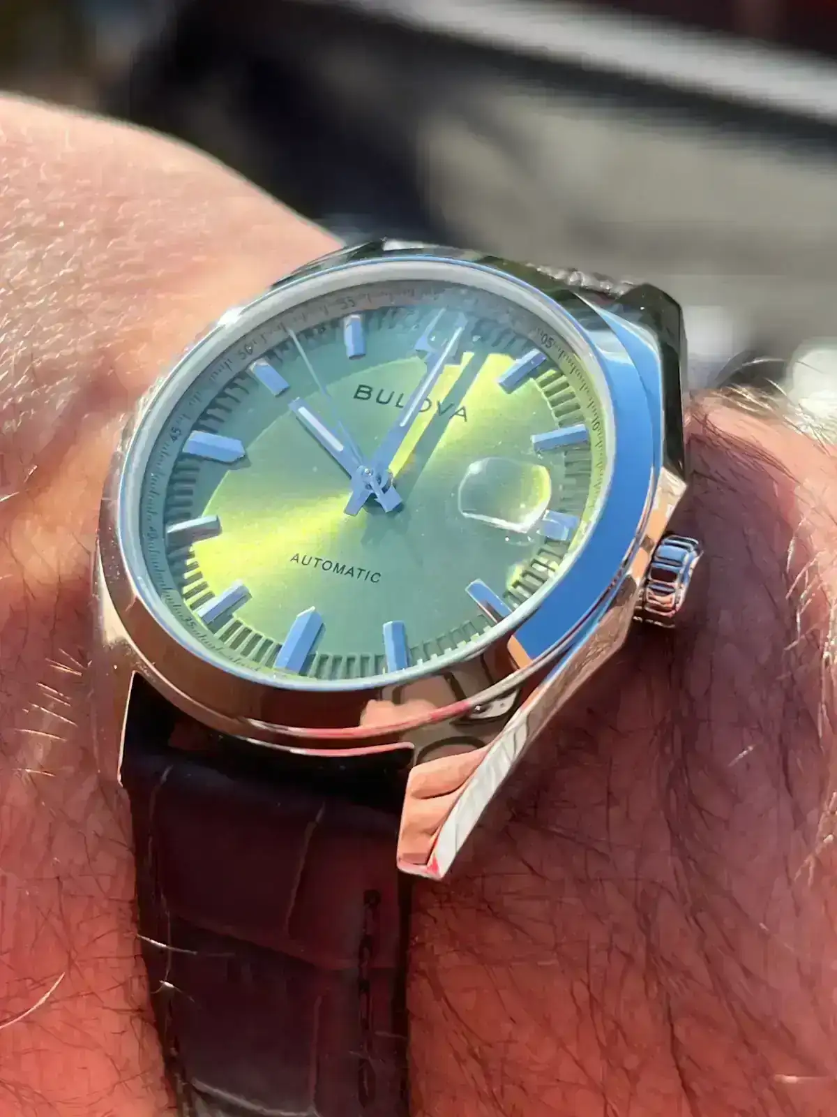 Bien, es cierto que no tenía ningún Bulova. Cierto están bien, que de la marca me atraían mucho Su crono lunar y los Snorkel. Pero este con esta esfera, y esta caja… son de lo más refrescante que ha entrado en mi casa,junto con el Charlie ( el Concordia azul celeste ltd ed)que me traje de Paris a principios del tórrido Julio pasado.