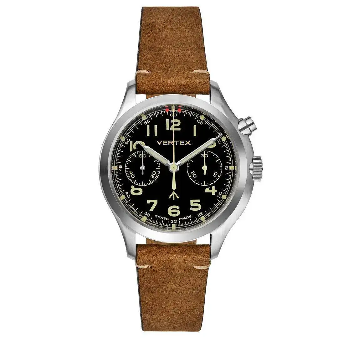 Hace tiempo que me gustan este tipo de cronos con caja asimétrica. De hecho,VERTEX, que también fue proveedor para el ejército británico en la WWII, dispone de uno "parecido" en su catálogo actual: el MP45.