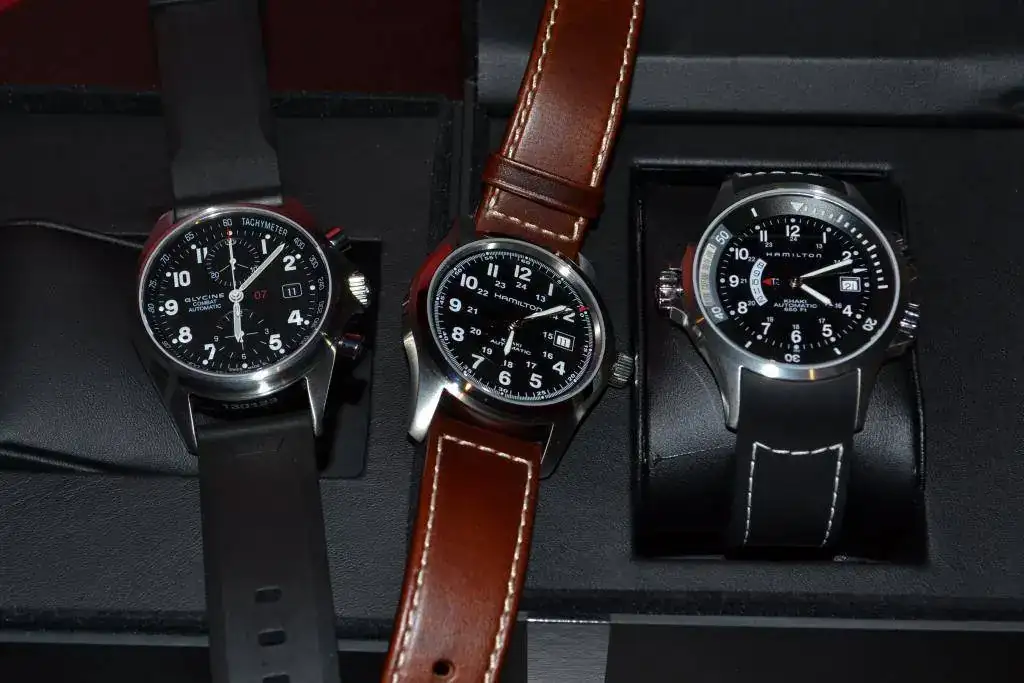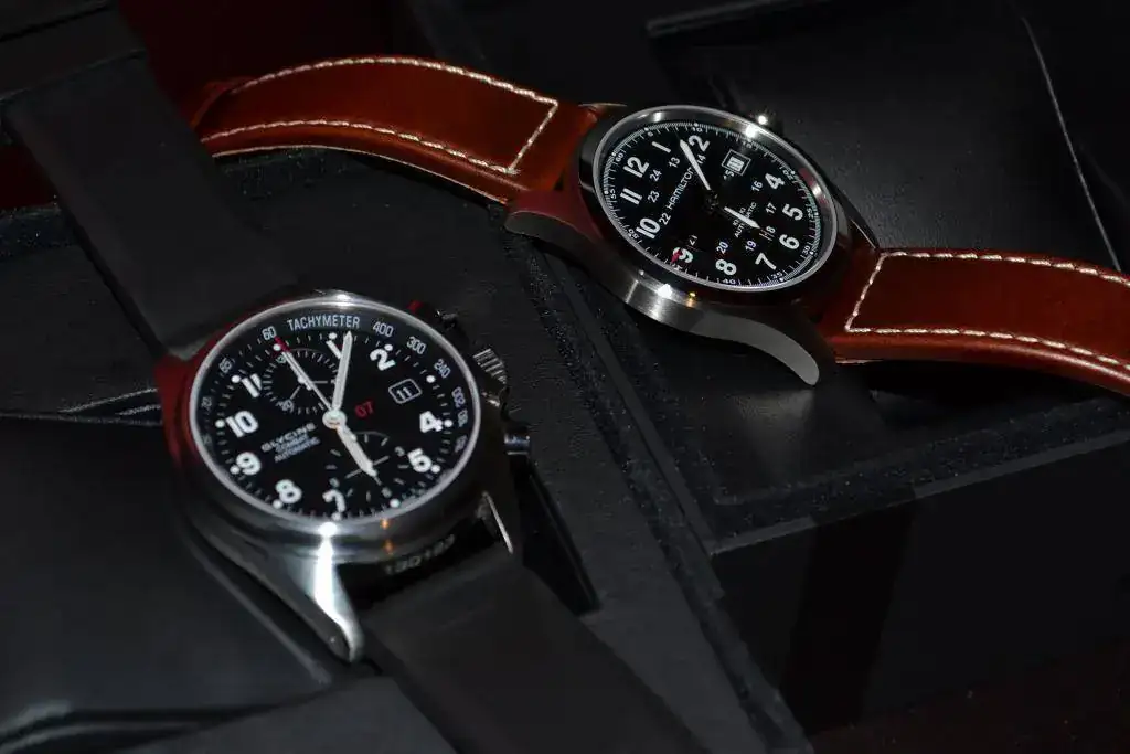Un bonito Khaki Field de 42 y el Khaki Navy GMT en negro...
