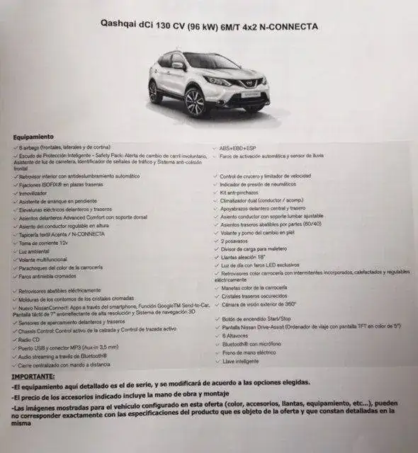 Ruego miréis en paginas de CV de coches, No encontrareis un Nissan con este motor y equipamiento con este precio.