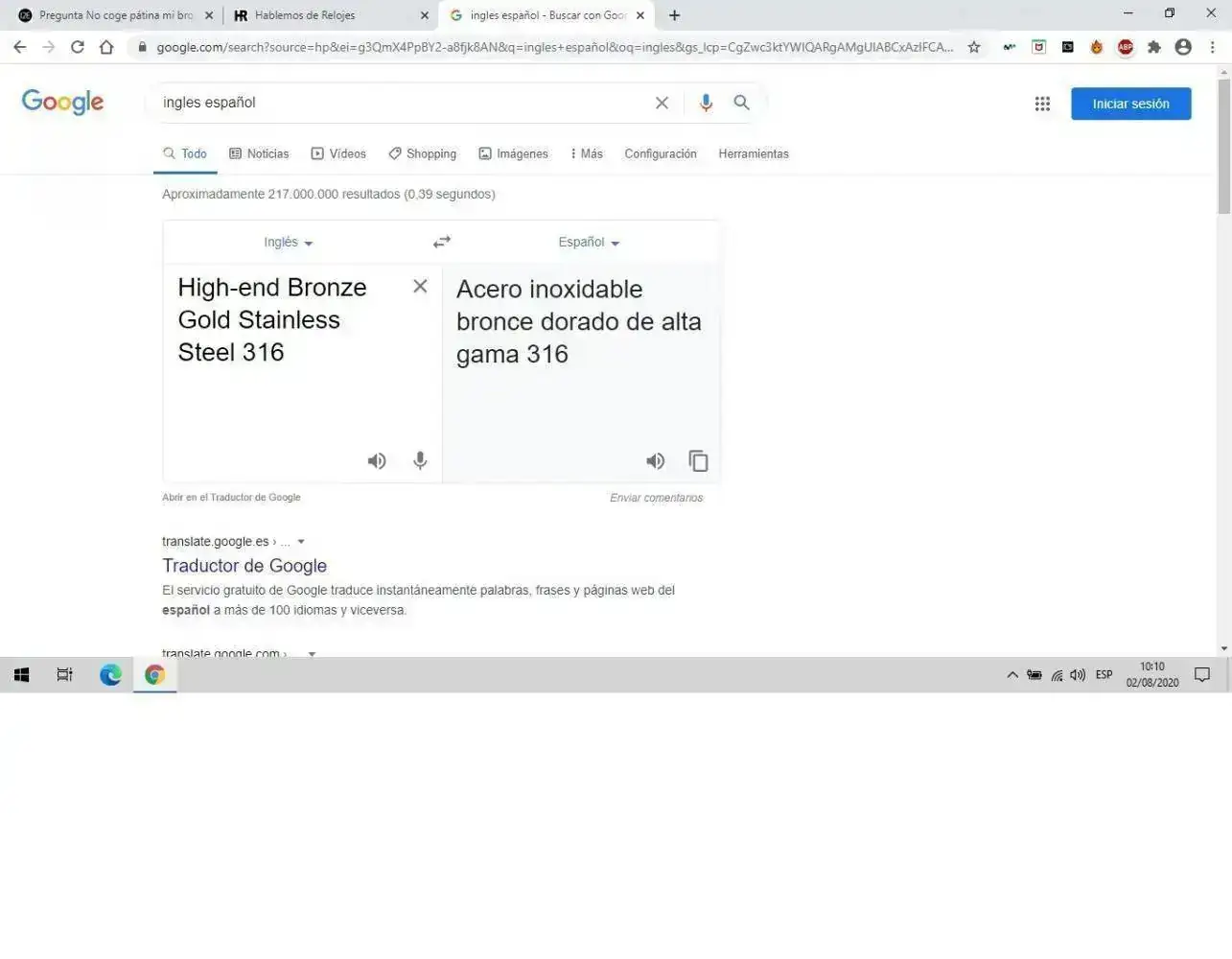 "High-end Bronze Gold Stainless Steel 316" para mi está claro que es caja de acero inoxidable acabada en color bronce/dorado de alta calidad, de hecho, acabo de hacer un simple ejercicio, al cual recurro alguna vez cuando no estoy seguro, ya que mi inglés es nivel medio y en este caso dadas las dudas que parece sembrar he pensado, voy a pasarlo por el traductor a ver que me dice...