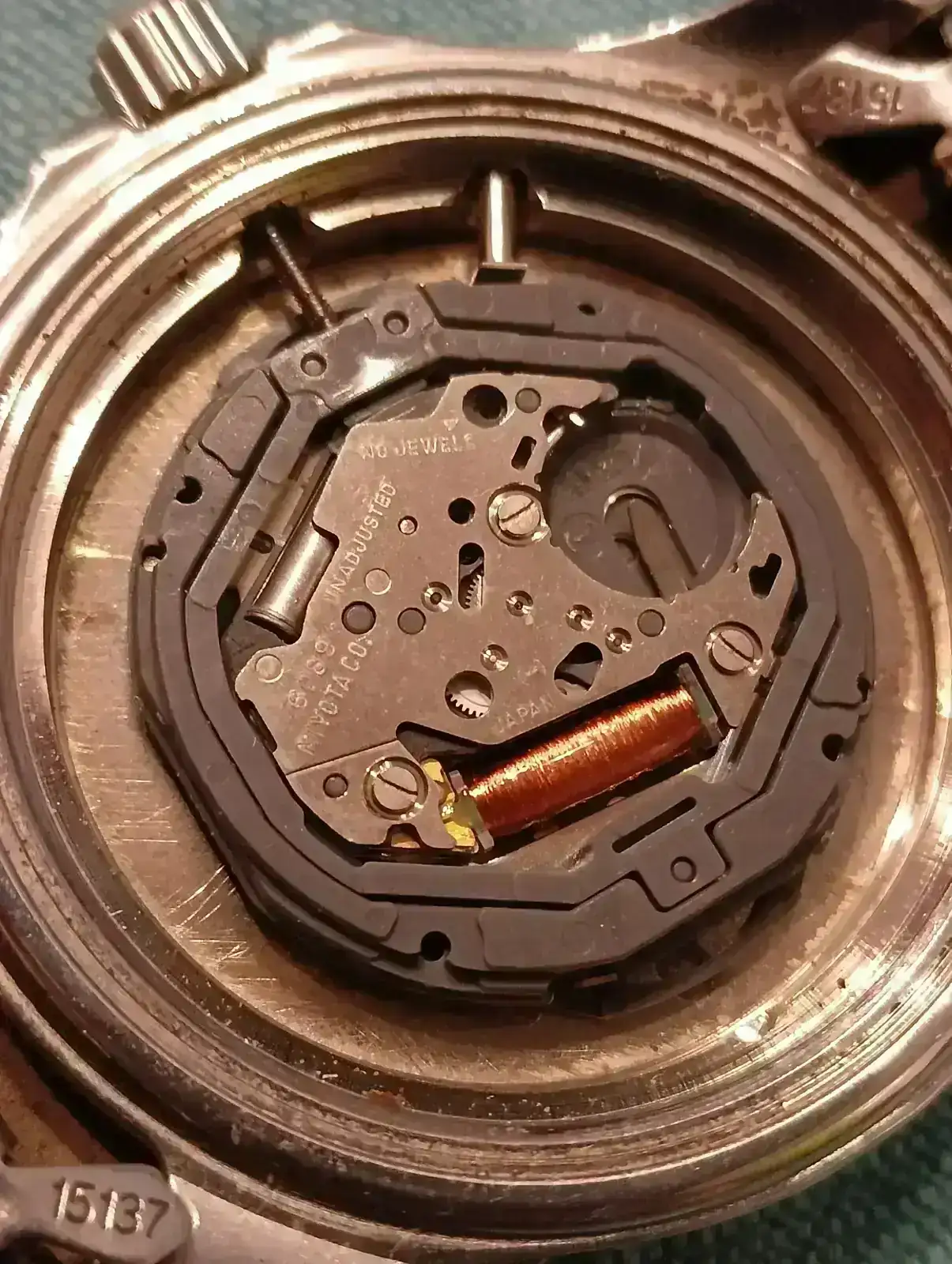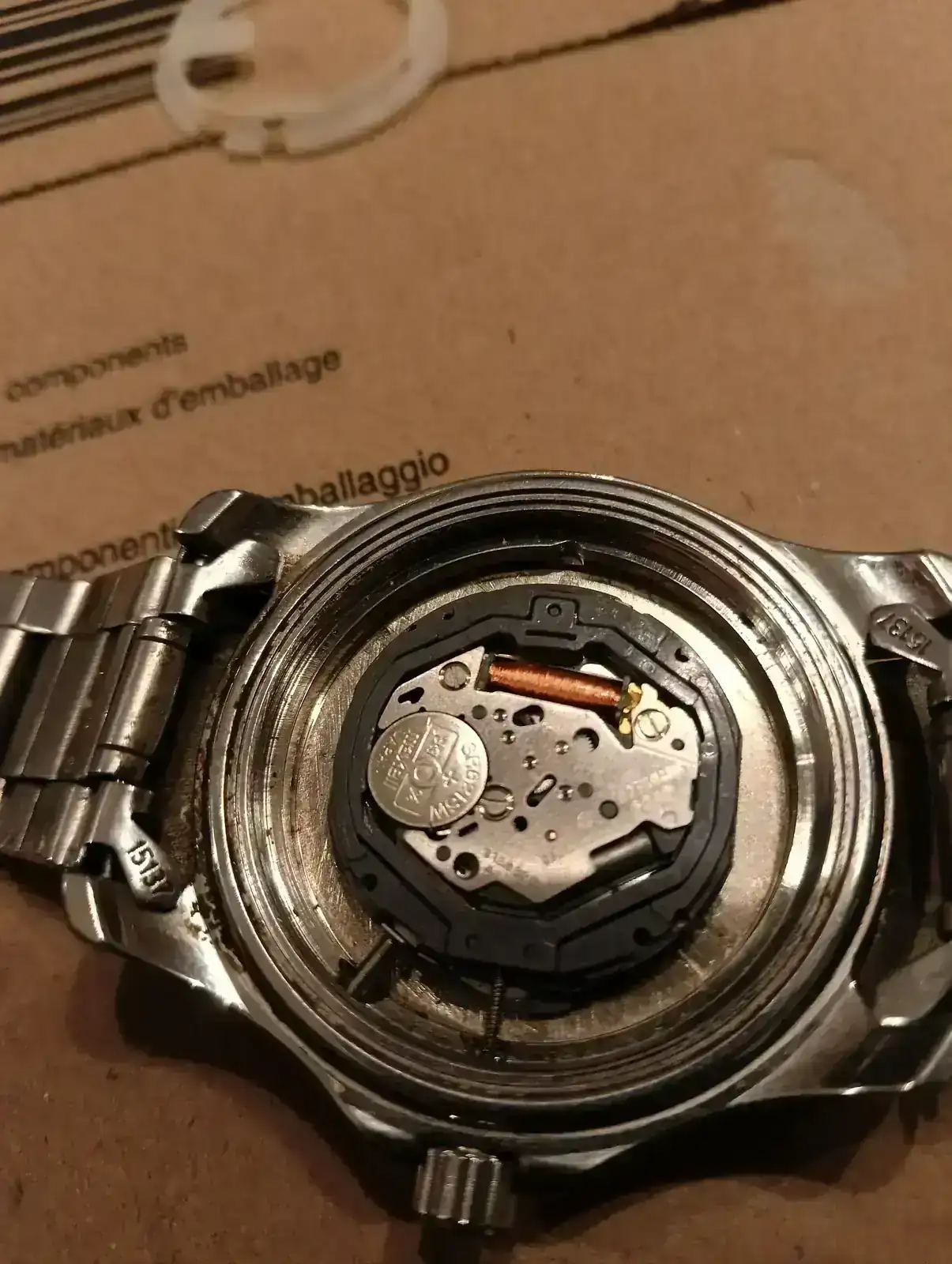 Pues resulta que me dejó mi hermano uno de sus relojes porque se le despegó un índice. Lo pegué y quedó muy bien, tras lo cual aproveché para cambiarle la pila. Aunque con la que tenía aún funcionaba, ya se lo daría con eso también resuelto. La cuestión es que tras el cambio, no funciona. Le he puesto una segunda pila y tampoco. Le he puesto la original, y tampoco. ¿Es posible que al quitar la pila, haya provocado un corto al contactar en algún momento positivo y negativo de la batería con el calibre? ¿Alguna otra idea? Decir que las manecillas se mueven sin roces y el datario también cambia al girar la corona.