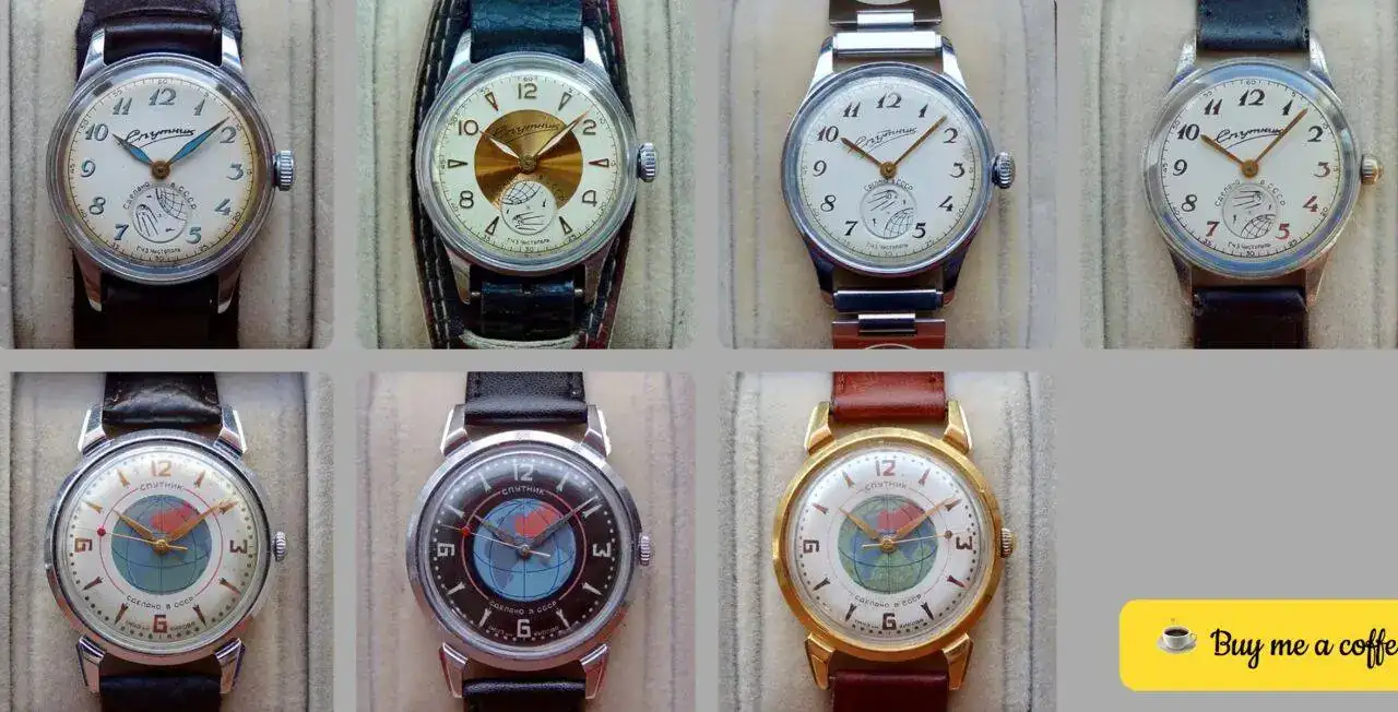 En el apogeo de la carrera espacial, y tras el éxito del lanzamiento del primer satélite artificial de la historia, el Sputnik-1, dos factorías (la de Chistopol y la Primera de Moscú) diseñaron relojes para conmemorar el acontecimiento. Estos diseños los denominaron en ambos casos con la marca Sputnik (Спутник, que significa "satélite" en ruso) y se produjeron desde el lanzamiento del satélite (4 de octubre de 1957) hasta aproximadamente el histórico primer vuelo de Gagarin (2 de abril de 1961). Los diseñadores de ambas factorías optaron por utilizar el segundero a modo de elemento "orbitante" como analogía a la órbita del Sputnik en torno a la tierra, pero con resultados muy diferentes. Te adjunto una captura de pantalla de la colección online de Dashiell, donde se ven estas variantes. A causa de lo pintoresco de estos relojes, en la actualidad son modelos muy falsificados, hay que estudiarlos antes de lanzarse a por uno, en caso de que se tenga interés en la originalidad histórica.