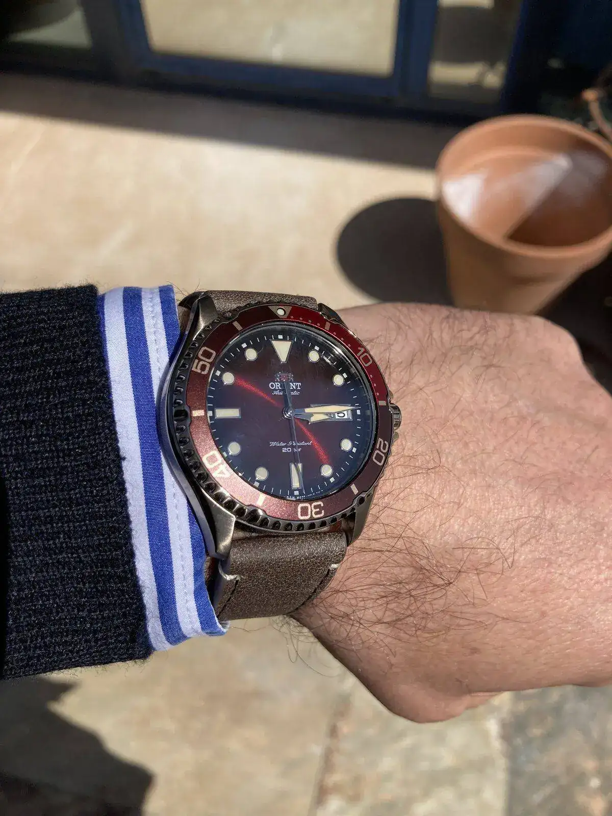 Ese modelo es precioso. Andaba detrás de un kamasu y si no fuera porque lo he visto en persona y vi que la corona es muy pequeña (que en el fondo da igual, pero sirve de excusa, por ahora) ya me lo habría comprado.Tuvo que aparecer esta versión limitada de Orient. No he tardado ni 2 minutos en decidirme. Llevaba tiempo pensando en comprarme el otro, la versión normal con bisel negro... pero es que este es perfecto, aunque me haya salido más caro.