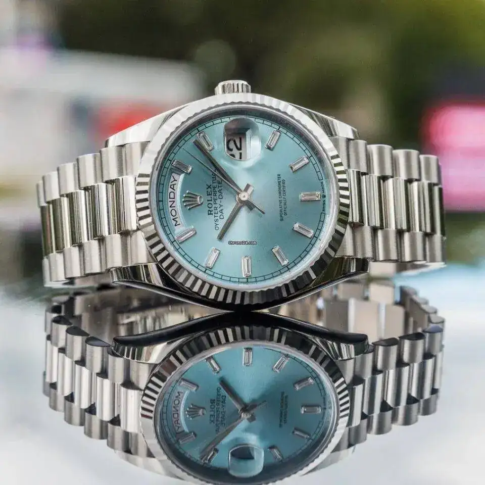 Pues resulta que en mi album de recortes de relojes que me gustan en "Pinterest" acabo de añadir este bonito Day Date de 36mm. Es un modelo descatalogado y pese a no gustarme mucho el oro amarillo ni el verde, la combinación de ellos en este modelo me resulta espectacular. Lo malo es que un reloj así llama demasiado la atención/muy ostentoso, creo que no me lo pondría porque me gusta guardar un perfil bajo, no por no gustarme. Es el Day Date 36mm Referencia: 118238.
