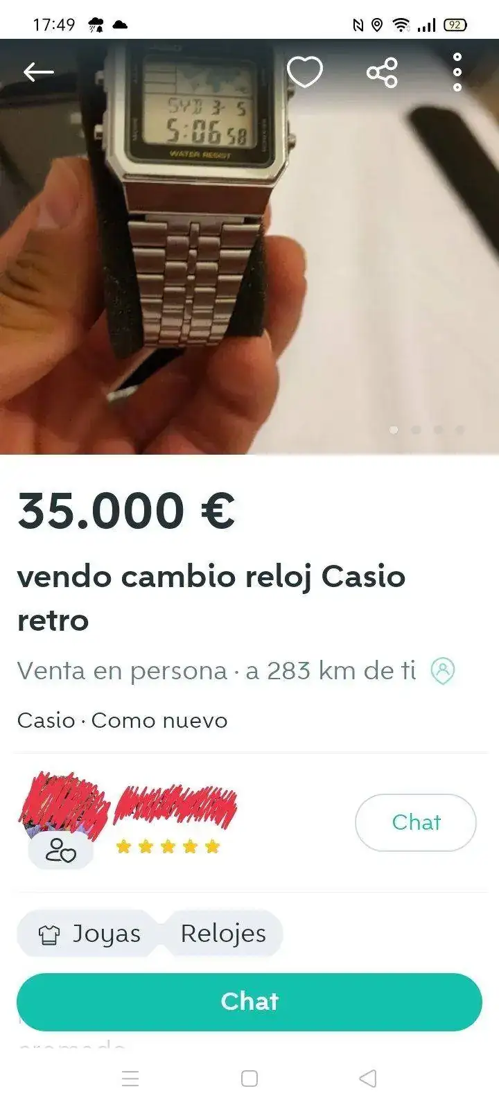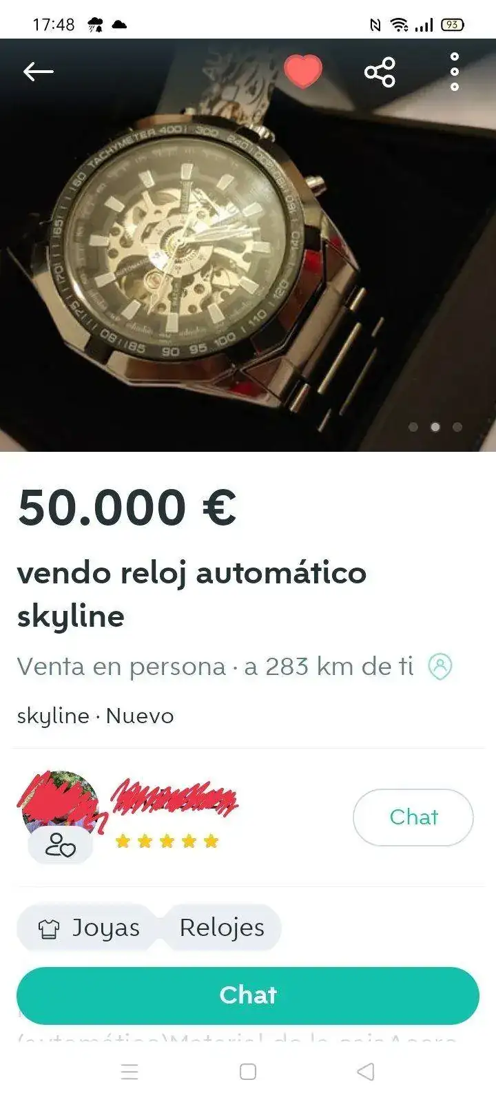 Diria que pensó que el punto es una coma, y los tres ceros los céntimos.En Wallapop. Lo que no sé si va en serio o es broma. Ojo,igual son modelos muy raros y yo lo desconozco , pero he mirado por encima la marca Skyline y son relojes de 65€ a 100€.Ver el archivos adjunto 2388754Ver el archivos adjunto 2388755