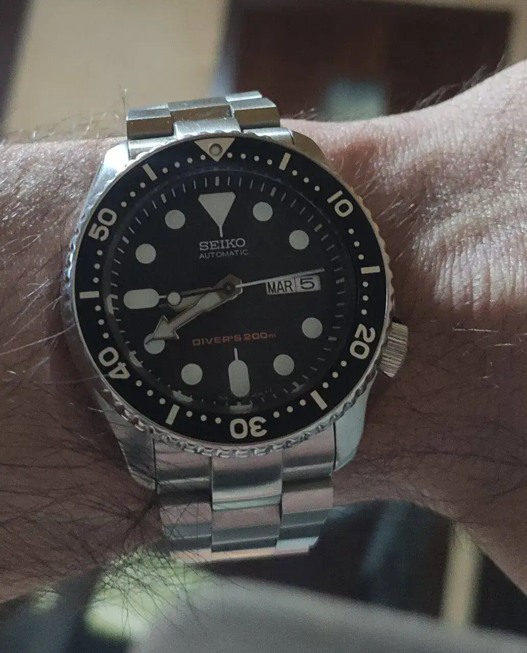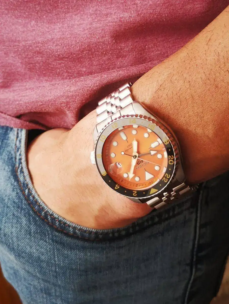Al final el coste del brazalete aparte me ha parecido muy caro y estoy llevando el reloj con esta correa de caucho, patrón gofre (“waffle”), que creo que le sienta muy bien.