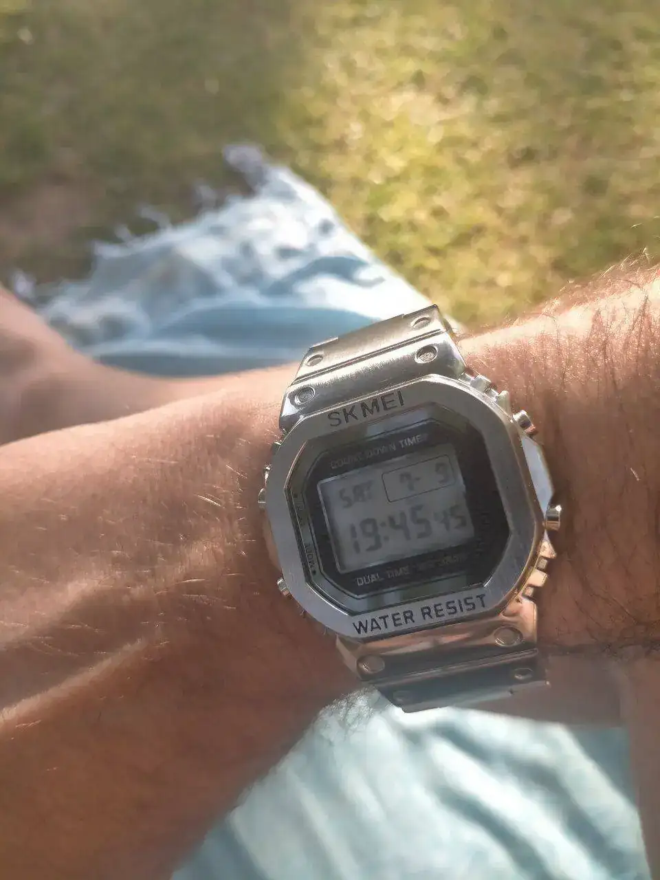¿Cómo que "casi plagio"?Pues en mi caso este SKMEI de 9€, cuyos números veo de un simple golpe de vista, y que uso para ir a la playa, piscina y montar en bici, y que si me caigo y golpeo, lo pierdo o me lo roban en verano no pasa nada de nada...