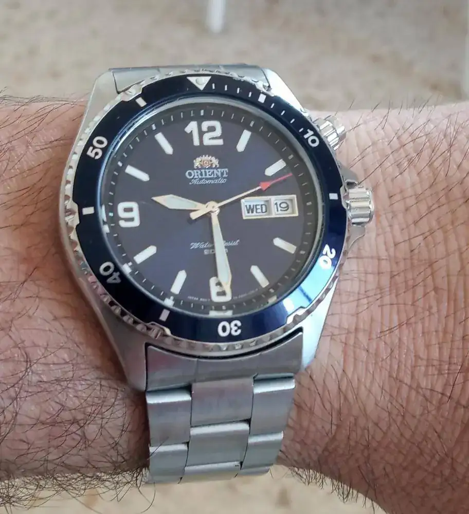Si gastas buena muñeca, yo iría a por el King diver, un buen homenaje el que ha hecho Orient, muy fiel al original, con una trasera y un brazalete mejores al del Kamasu. Lástima que el King Master, que es de 42mm, ya está en el límite para mí muñeca y este King Diver es de algo más de 43mm...