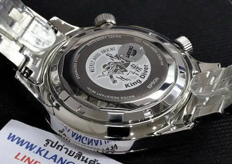 Ese "nombre estúpido" ya se usó en el King diver original, cuando aún no existía el logo de Orient y este homenaje es muy fiel, cosa que se agradece, ya que el King Diver es bastante importante dentro de la historia de Orient.
