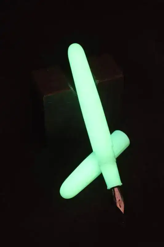 Tiene una pluma que es como los relojes que brilla en la oscuridad. Y el recubrimiento lo hace con conchas y cerveza entre otras cosas.