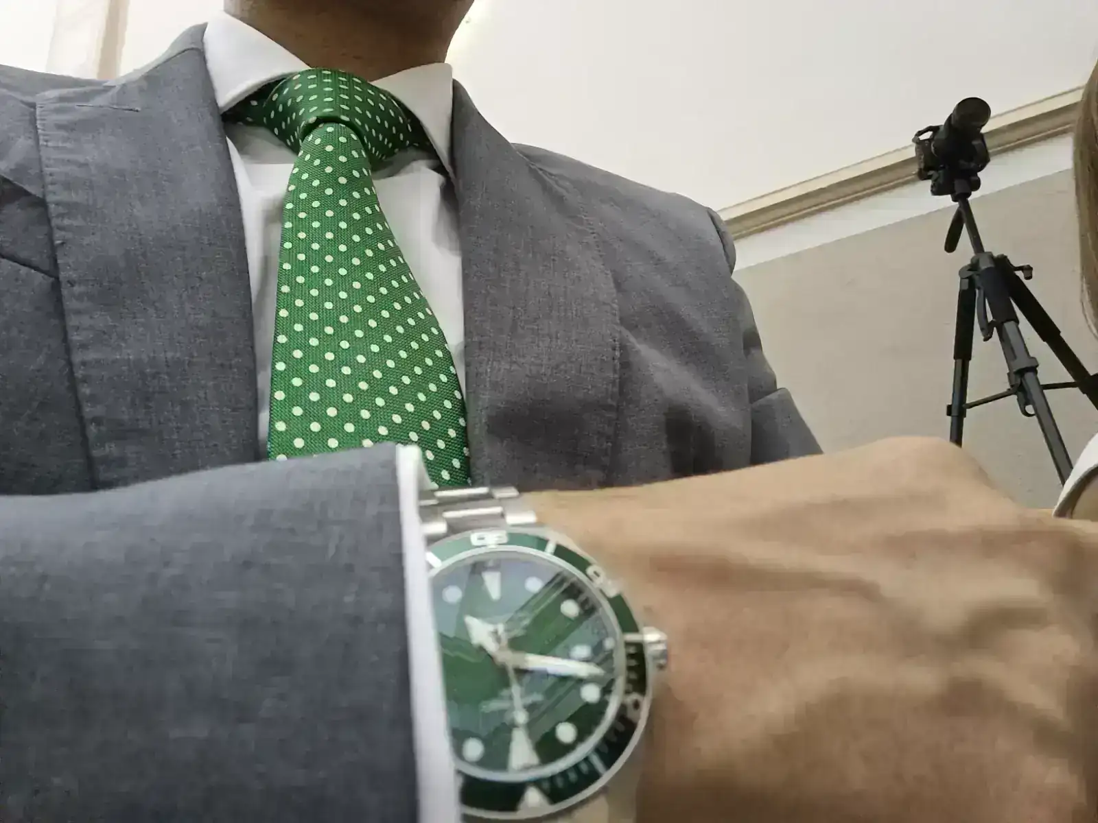 Oye, que chula esa corbata con ese tono de verde y ese traje con ese tono de gris.