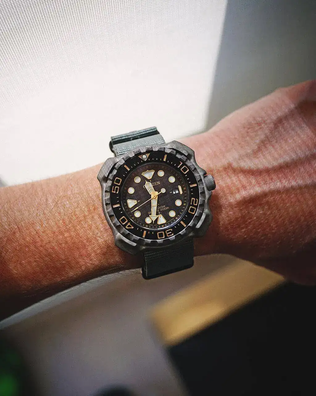Siempre me han llamado la atención algunos Citizen "grandotes" como el Orca, el Aqualand... pero siempre los había descartado directamente por el tamaño. El caso es que los vi en una relojería, entré como curiosidad a probármelos y me sorprendió tanto cómo me quedan y lo cómodos que los llevo que me llevé dos! El Orca y éste!