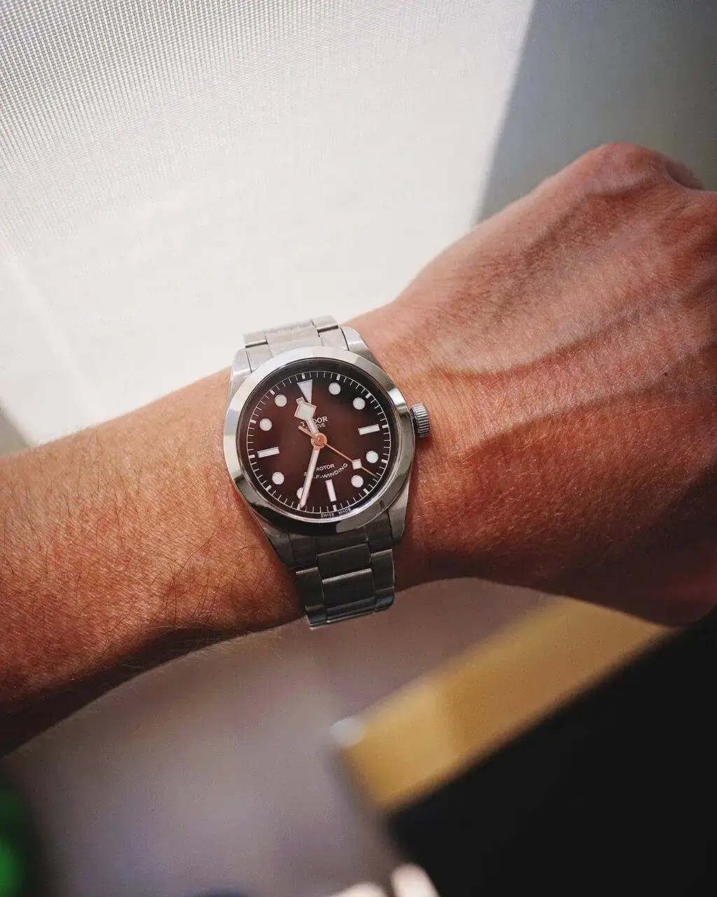 Como curiosidad os comparto un par de fotos que he hecho esta mañana y que creo que será interesante para la eterna duda de los tamaños de los relojes, sobretodo para los que tenemos muñecas muy delgadas.