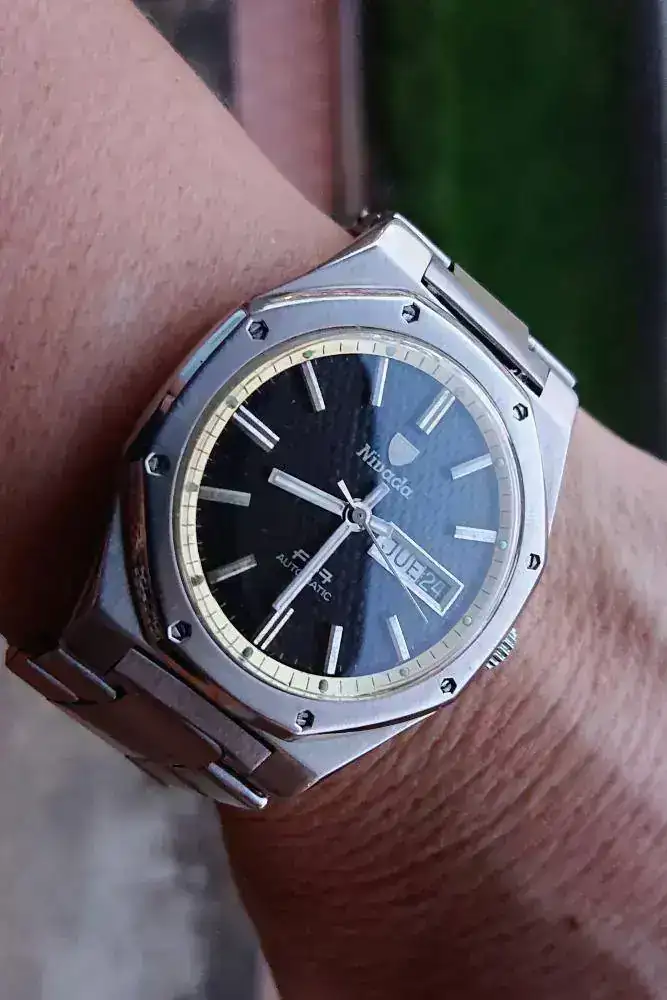 En Nochebuena y en Navidad, siempre llevo este, en recuerdo de mi padre. Lo llevó muchos años y no se lo quitaba ni para dormir. Incluso le hice poner el primer plexi original, que había en la caja y que estaba en buen estado, pero que le habían cambiado por uno más moderno y menos redondeado, en la última revisión: