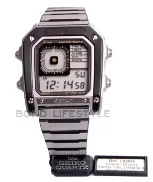 Tiene un aire al Seiko G757 (cuadrado, dial en sectores, pero son relojes muy distintos) y supongo que el juego de palabras con "Casi( n )o Royale" era muy goloso.