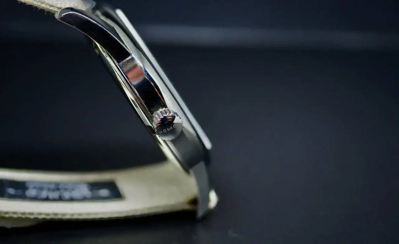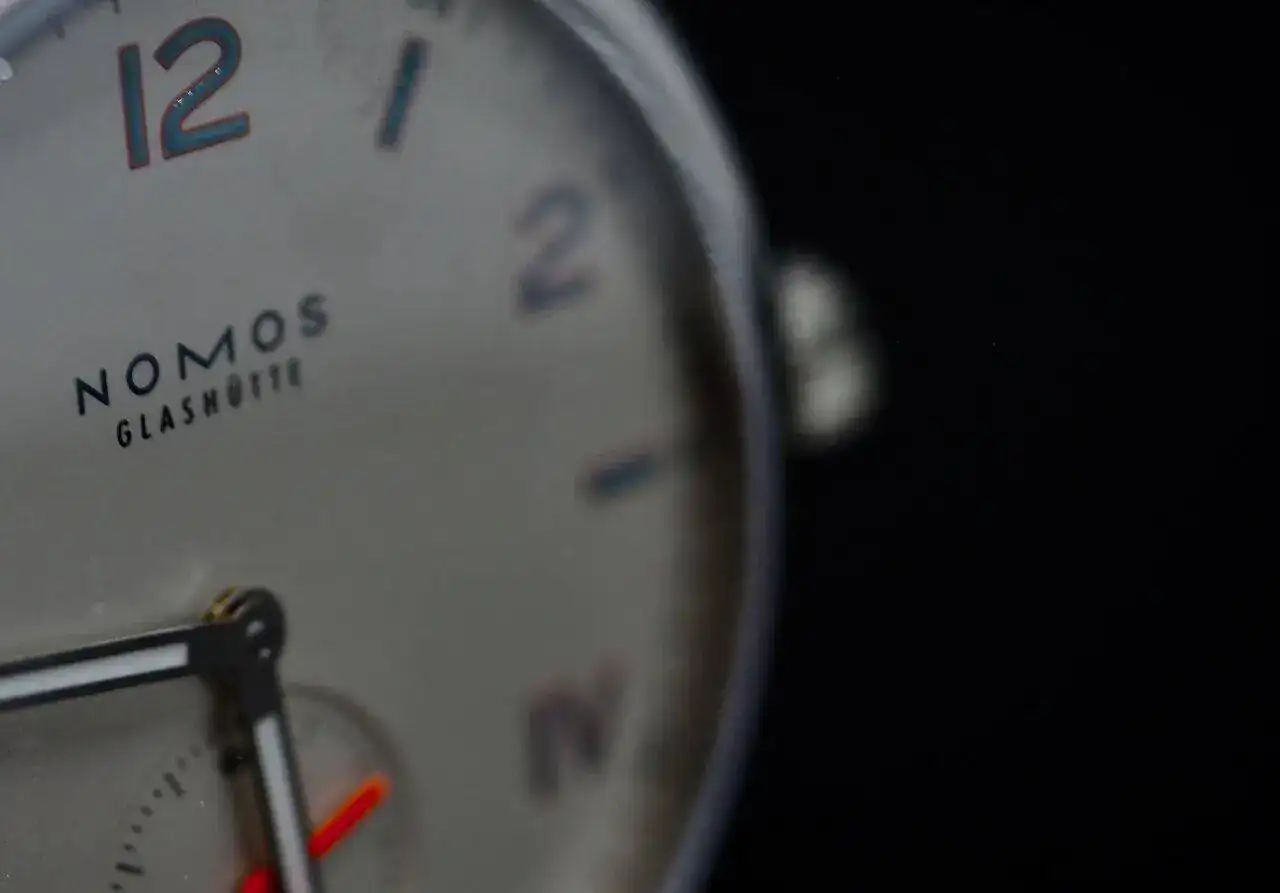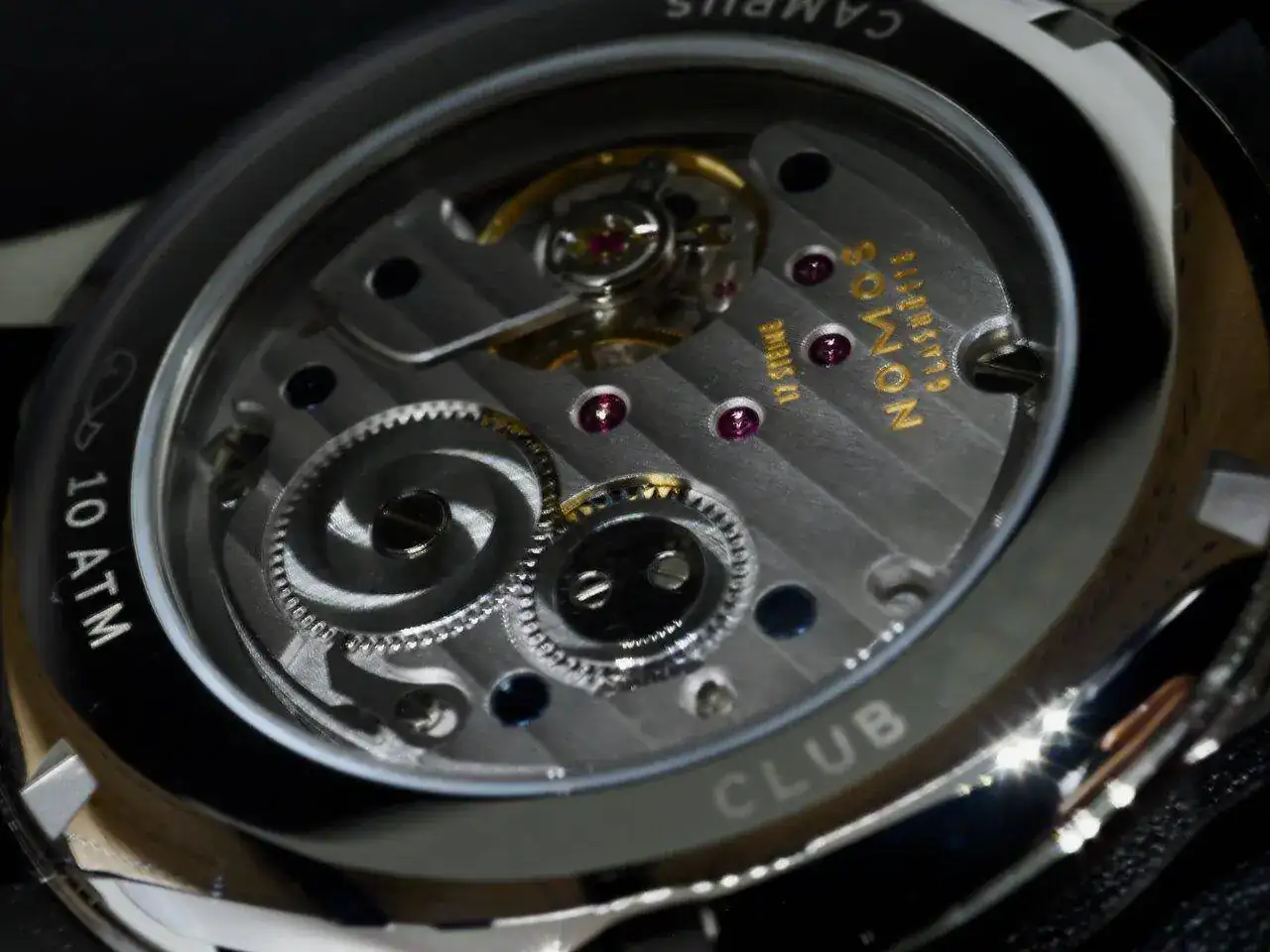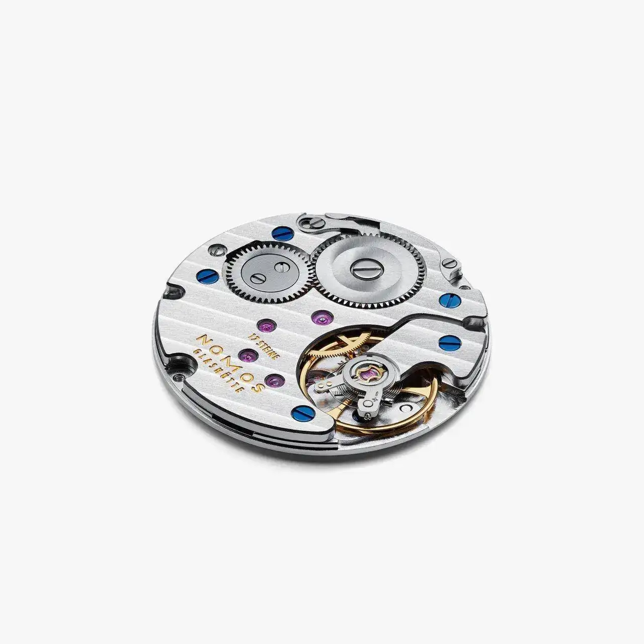superficies rodiadas con nervadura de Glashütte y perlado NOMOS