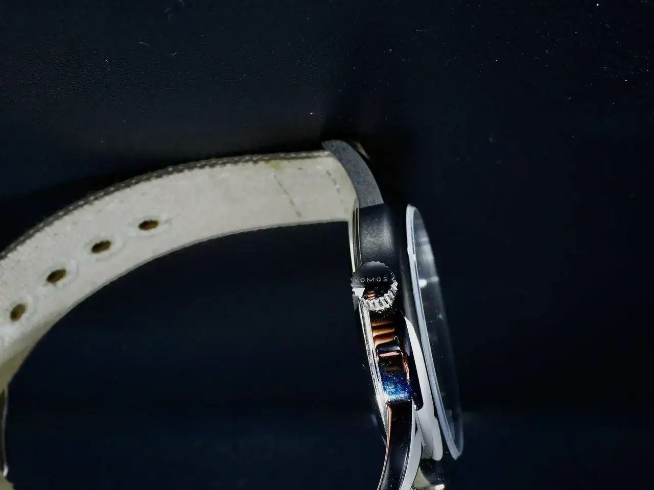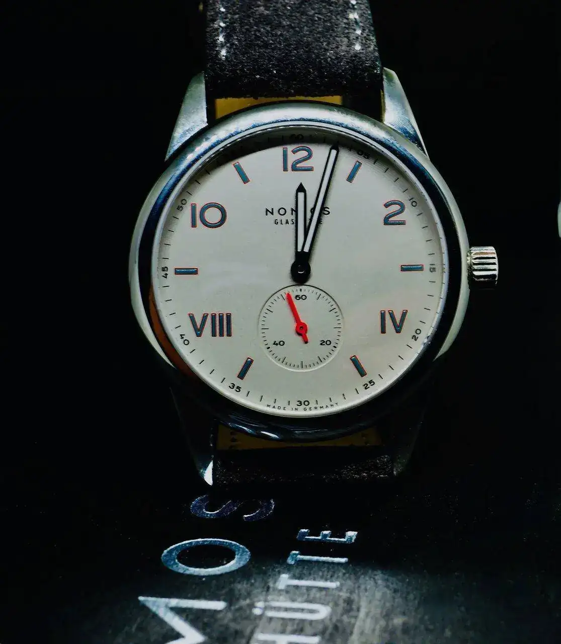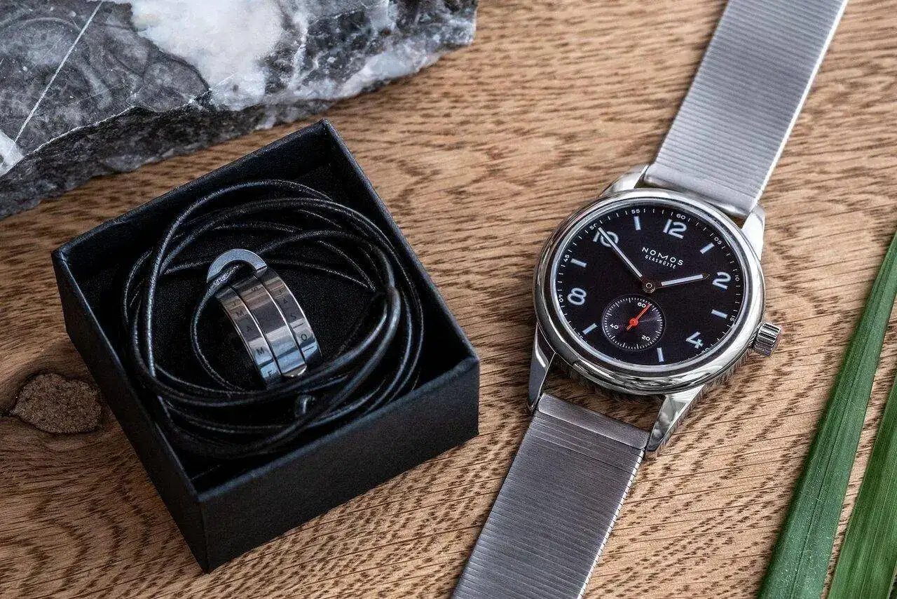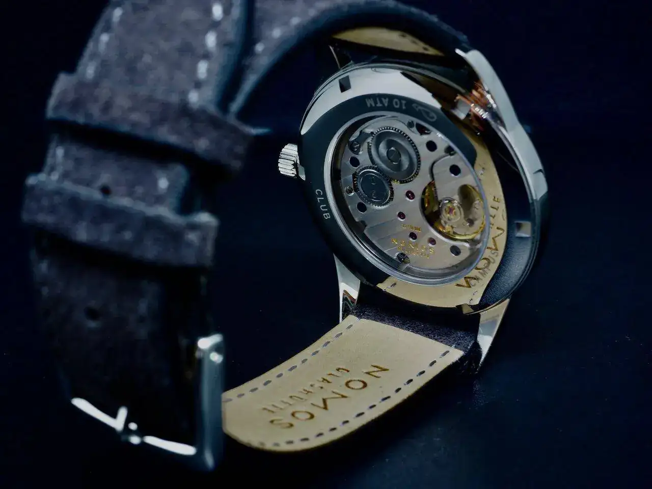 superficies rodiadas con nervadura de Glashütte y perlado NOMOS