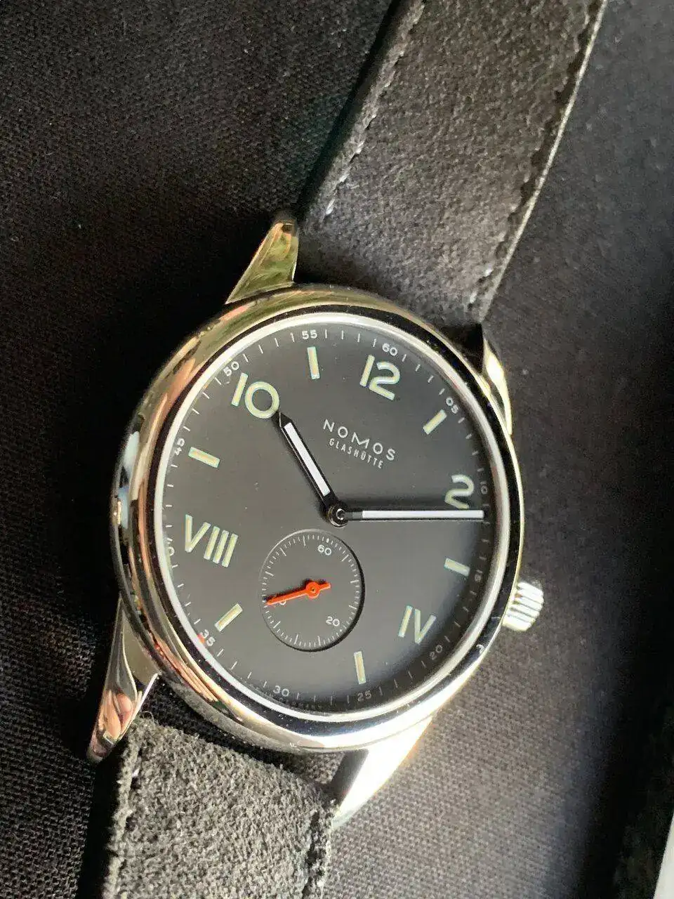 Es la versión del Club Campus 38 de esfera oscura y fondo visto (referencia 738). 1400€ en la web de Nomos (y tiempo de espera de 10 meses).