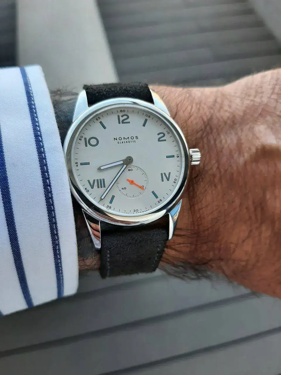 El martes me llego como regalo de pedida (después de 32 años ya toca), un nomos club calibre alpha manual.