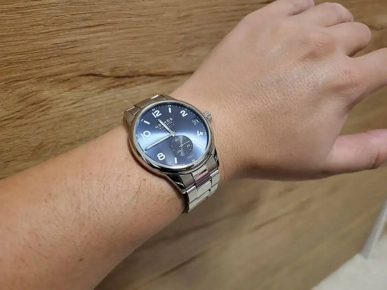 Buenos días, con el objetivo de dar salida a los que apenas me pongo, saco a la venta este Nomos Club Sport Neomatik fecha azul en 42 mm con fondo visto. Es un reloj muy bonito en vivo por el efecto rayos de sol de la esfera, con índices tipo "salchicha" (rebajan un poco la esfera donde va el índice, para luego rellenar con relieve, con luminova), y en este caso a diferencia de otros Club sport, le dan un finalizado que llaman galvánico a la esfera, que resulta muy interesante en vivo. Es un reloj muy cómodo gracias a su fondo plano, con mucha presencia, muy ponible dado su grosor y altura entre asas, que añade ser sumergible a 300 metros con corona rosca, además de la fecha.