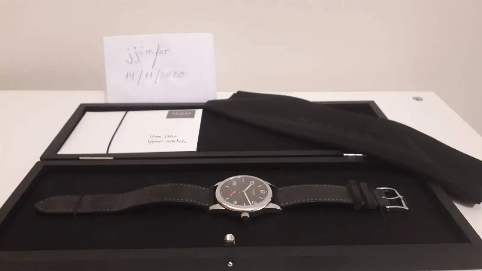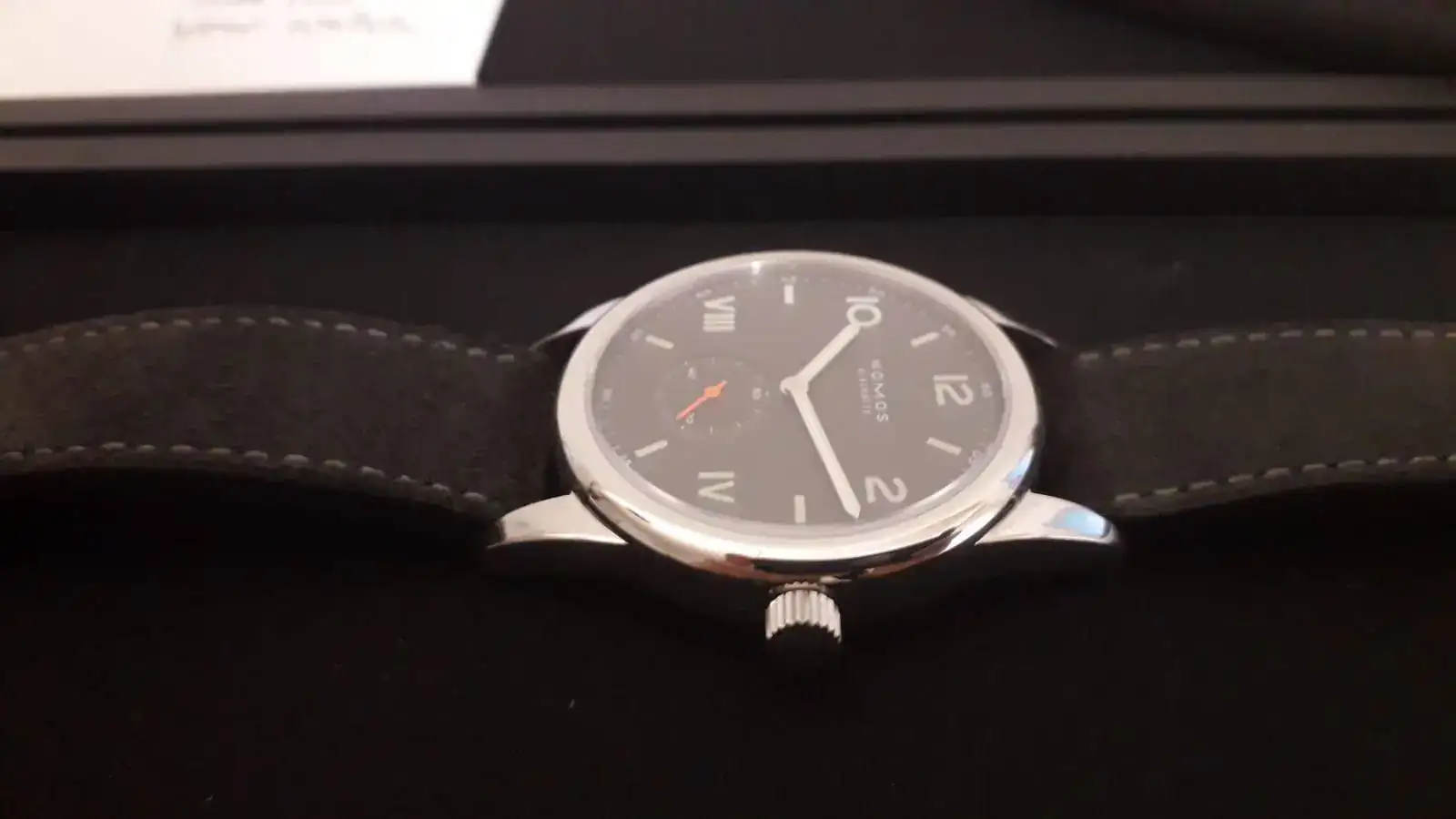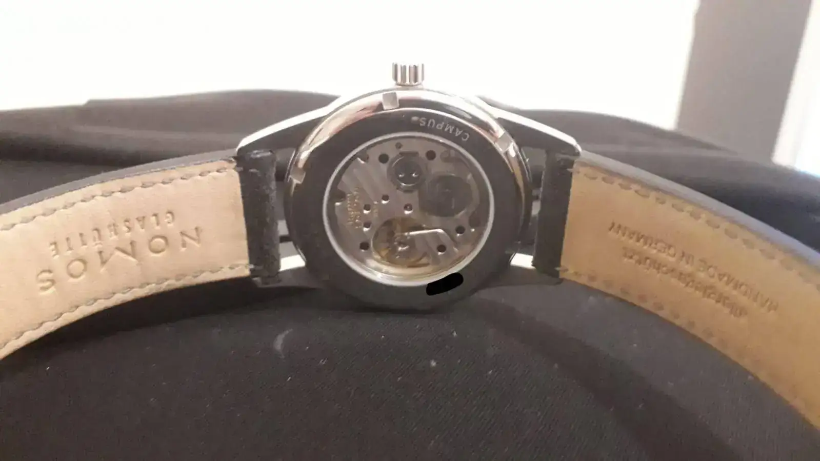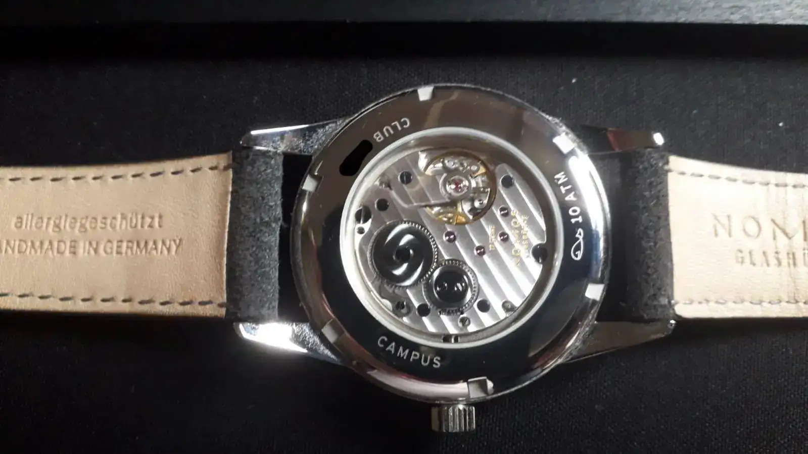Saco a la venta este reloj NOMOS GLASHUTTE CLUB CAMPUS 38 NOCHE REFERENCIA 738 con tapa trasera vista con cristal de zafiro. Viene con su correa original de ante antracita.
