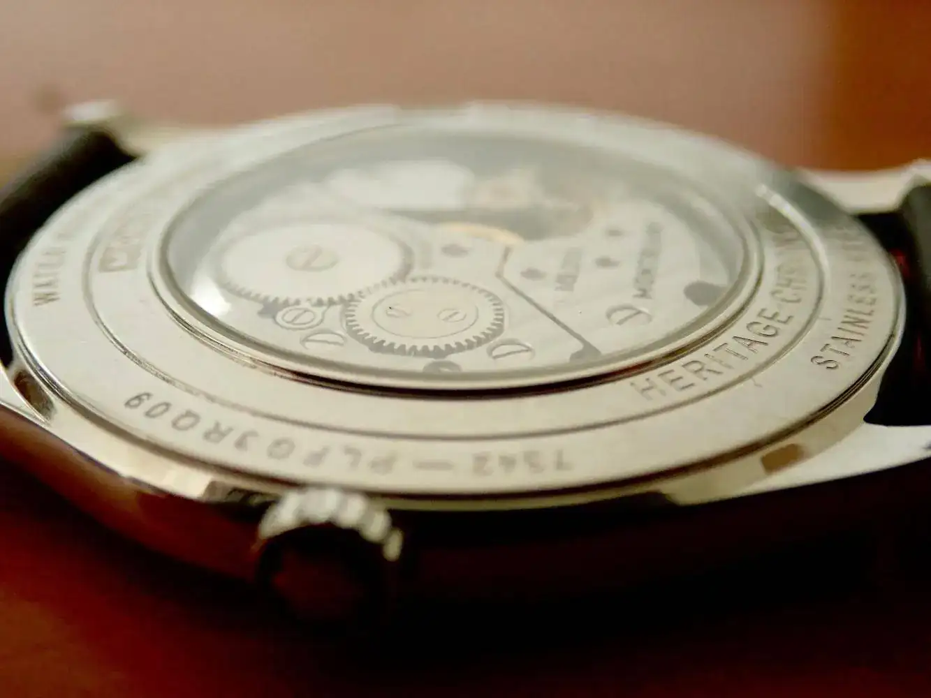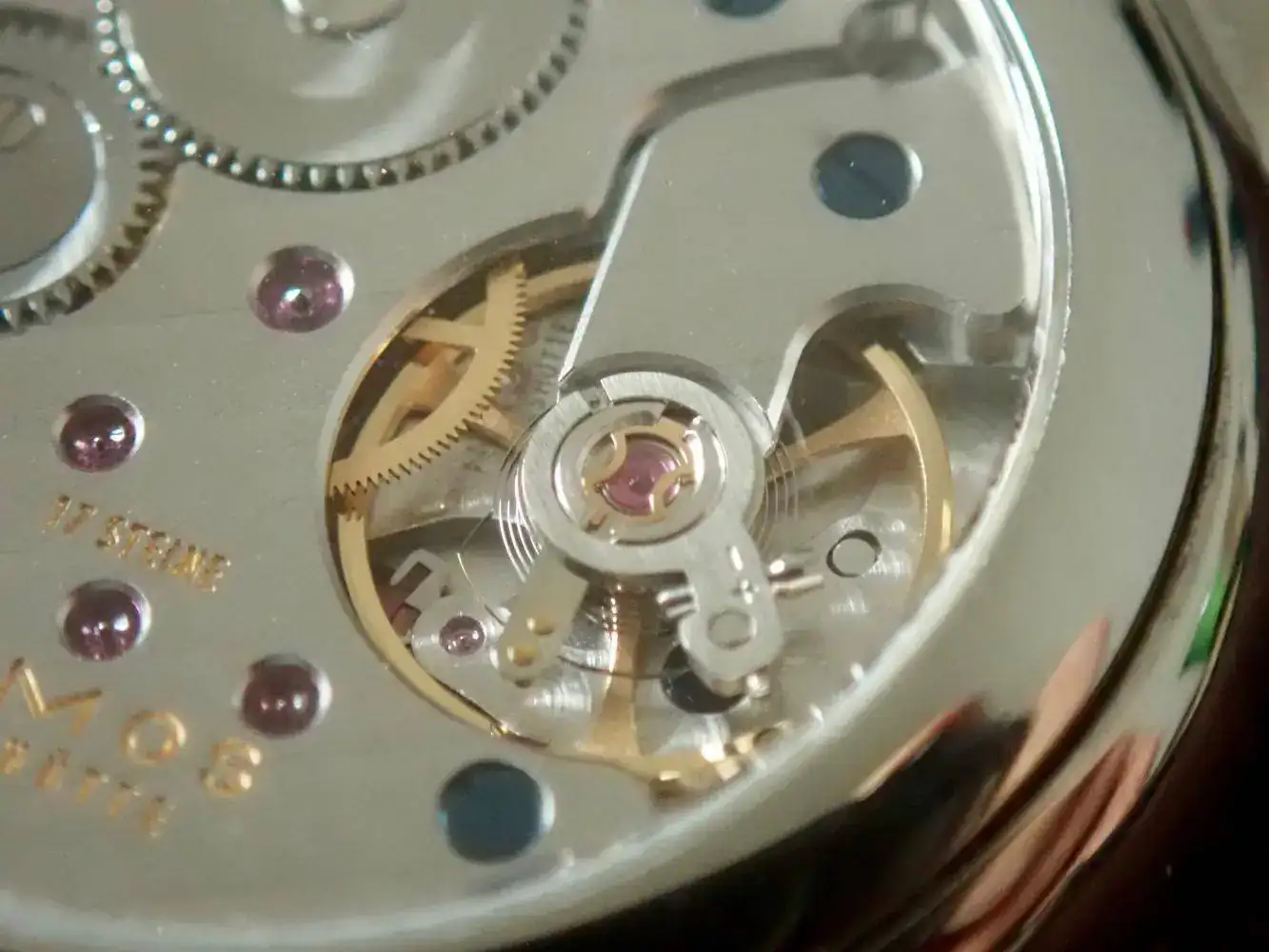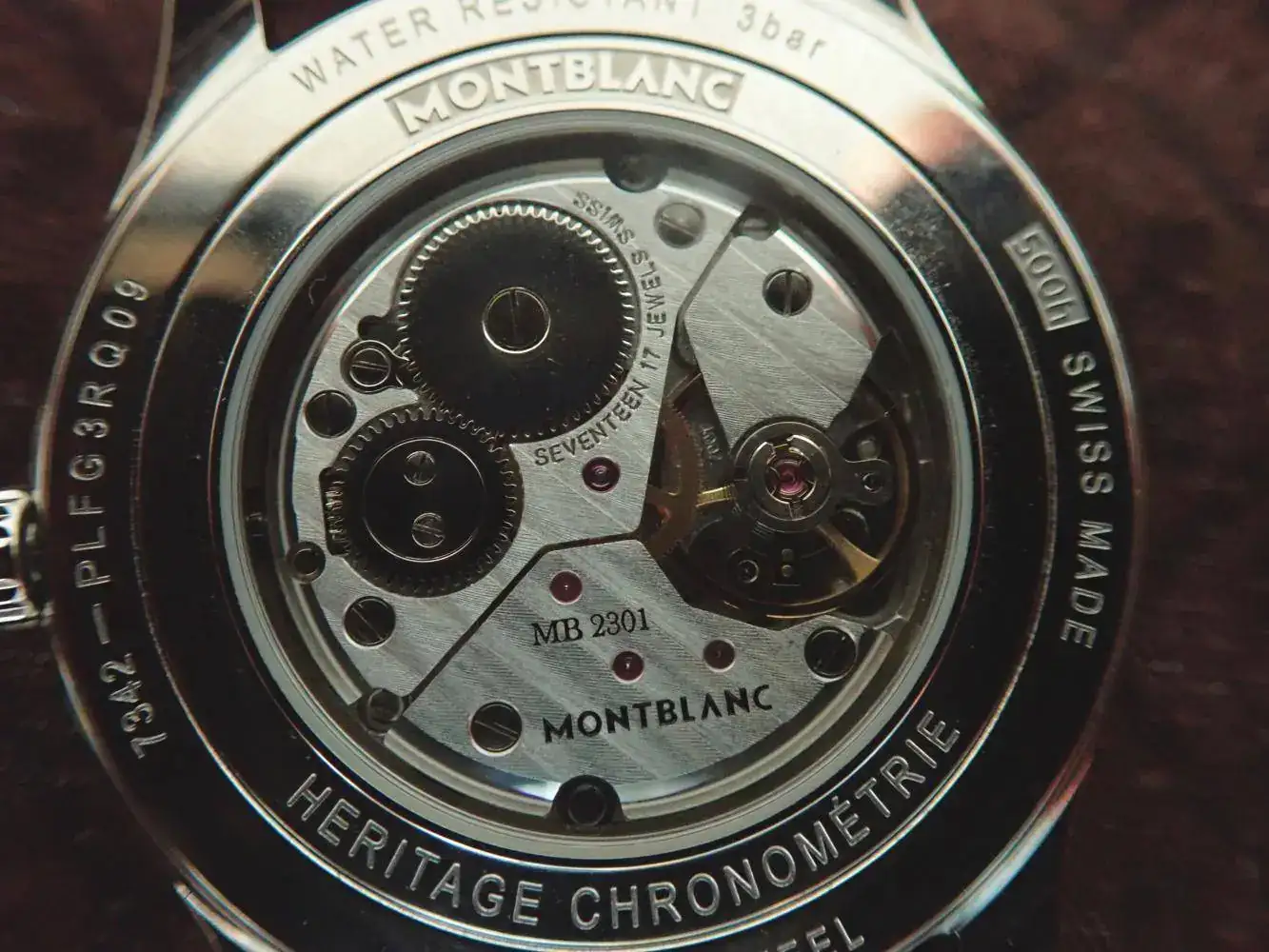 El maravilloso calibre a la vista, bien bonito. A destacar los tornillos azules que veremos que el Montblanc no lleva, dando una imagen (el Montblanc) más seria y menos colorida que encaja en la personalidad del mismo (igual que el toque de color encaja en este).