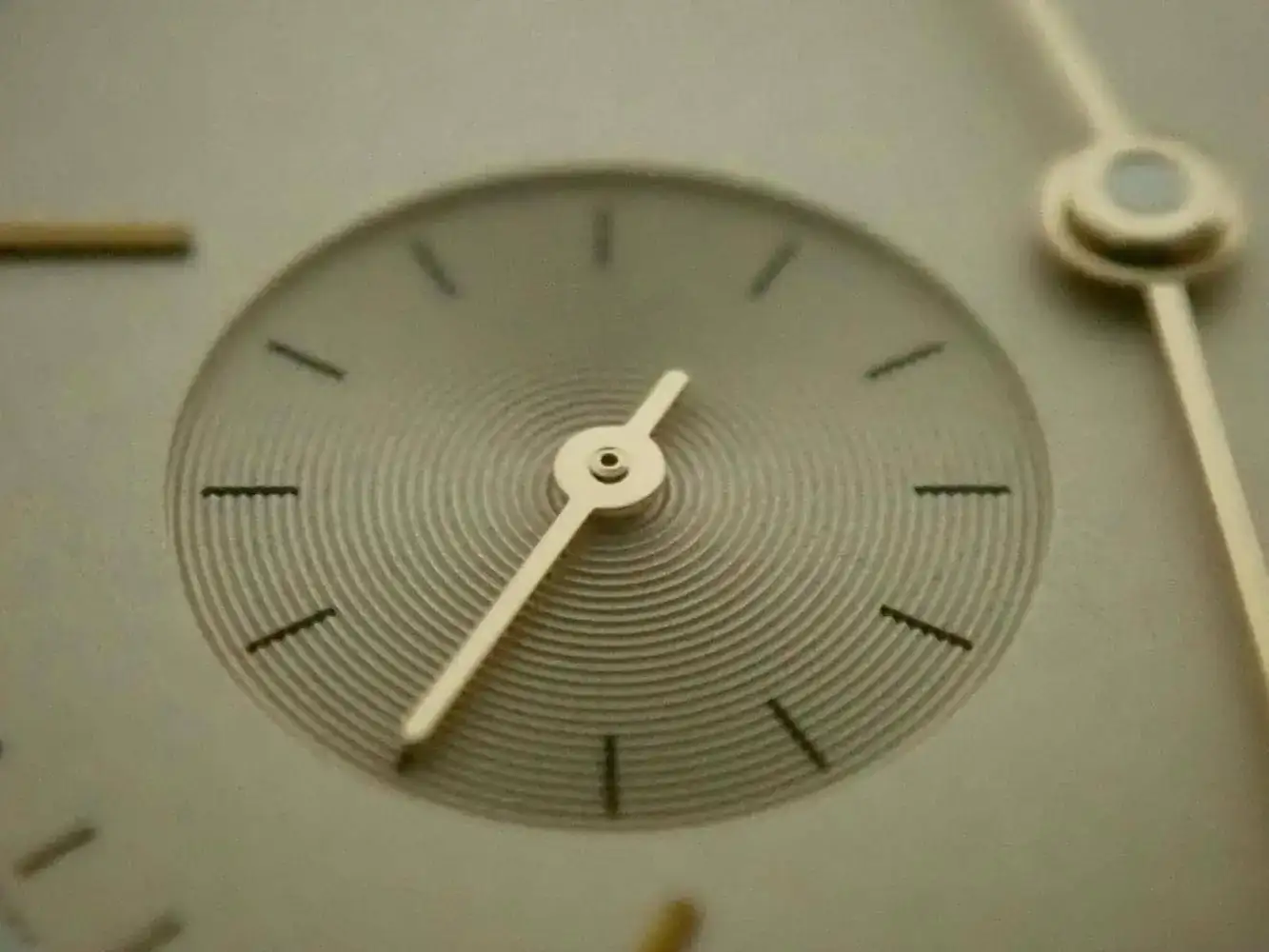 Precioso "small seconds" muy clásico. Agujas también minimalistas doradas.