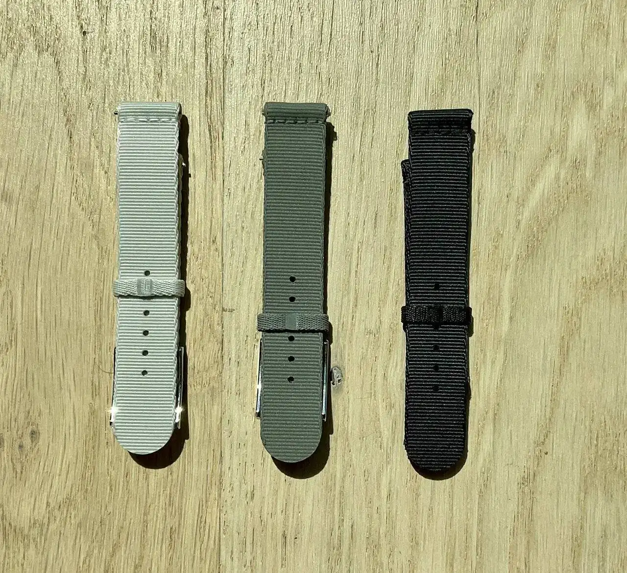 Las correas textiles de Nomos me parecen una buena opción, tienen tres colores pero la que creo que combinaría mejor es la que ellos llaman "blue-black". Una cosa que me ha sorprendido es que la hebilla la venden aparte.