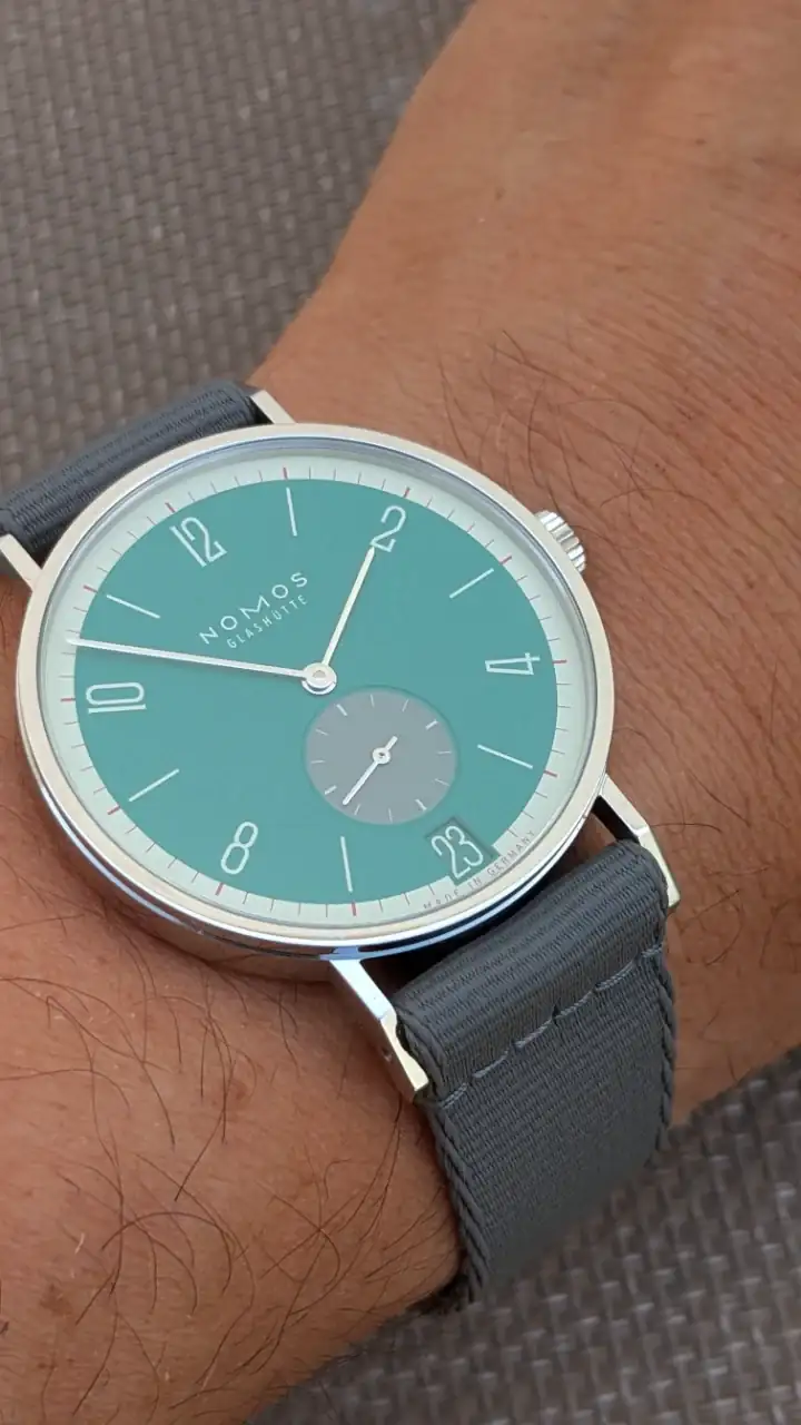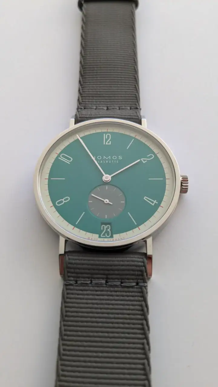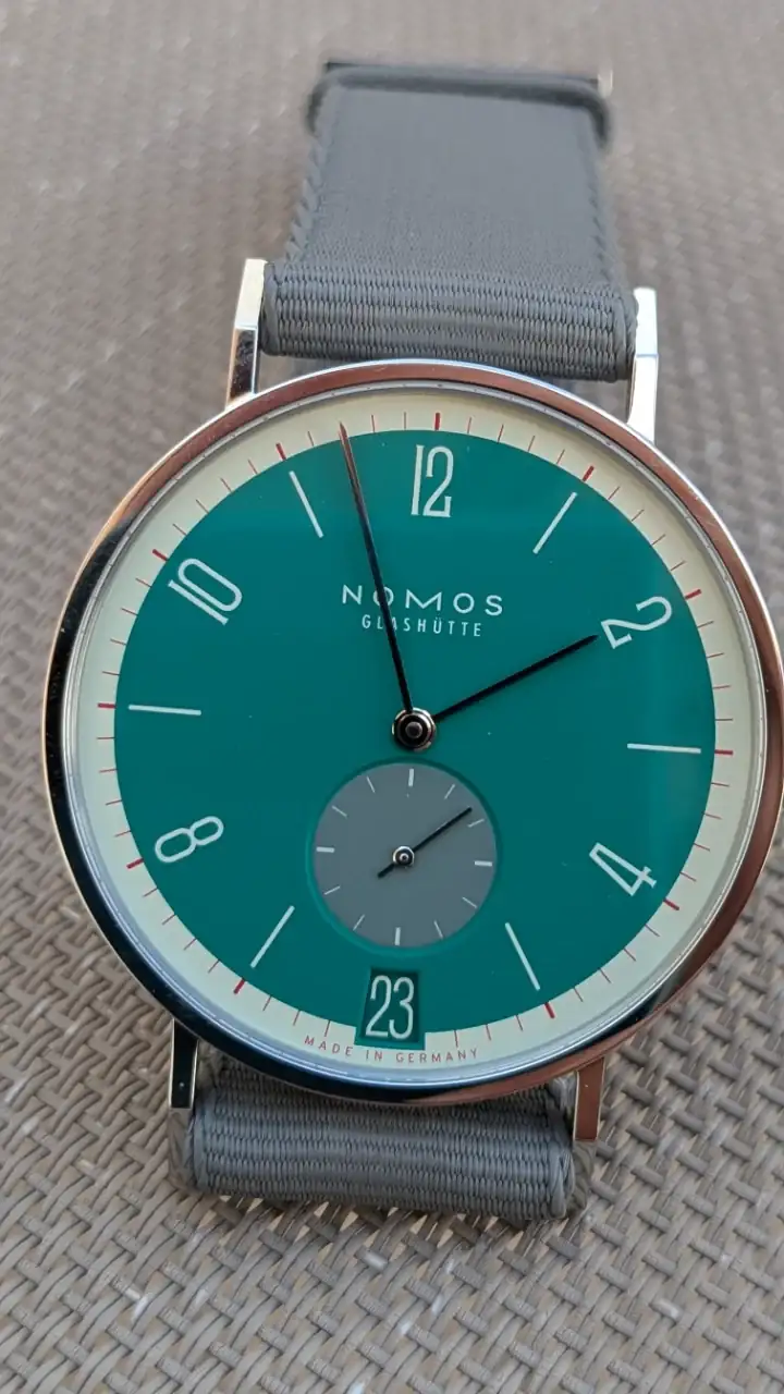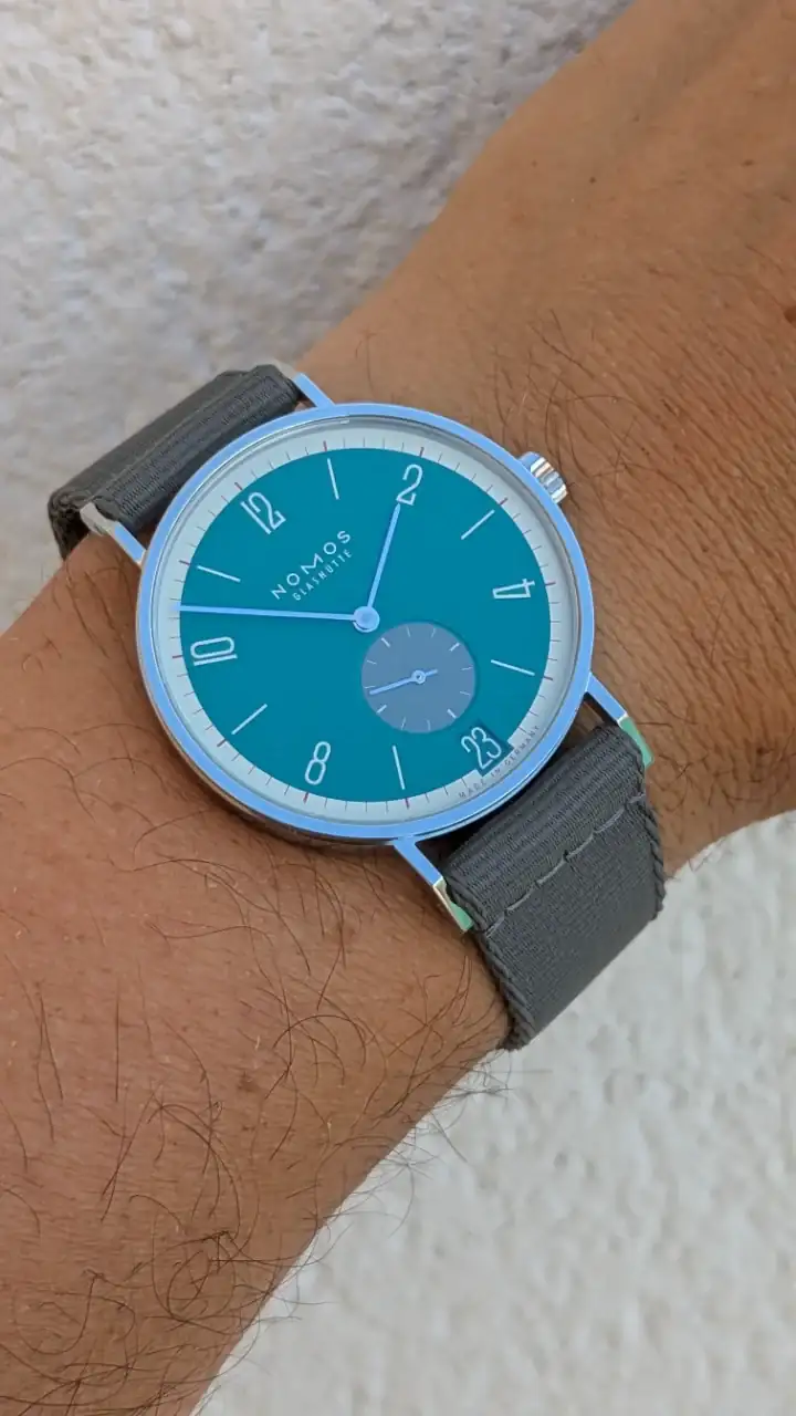 El disco de la fecha me parece también todo un acierto. Nomos se nota que ha puesto empeño por esta edición de 175 aniversario, en la que incluso ha rebajado el precio unos 400 € respecto al modelo normal, y presentando 31 colores como podéis ver en el otro hilo que pongo arriba.