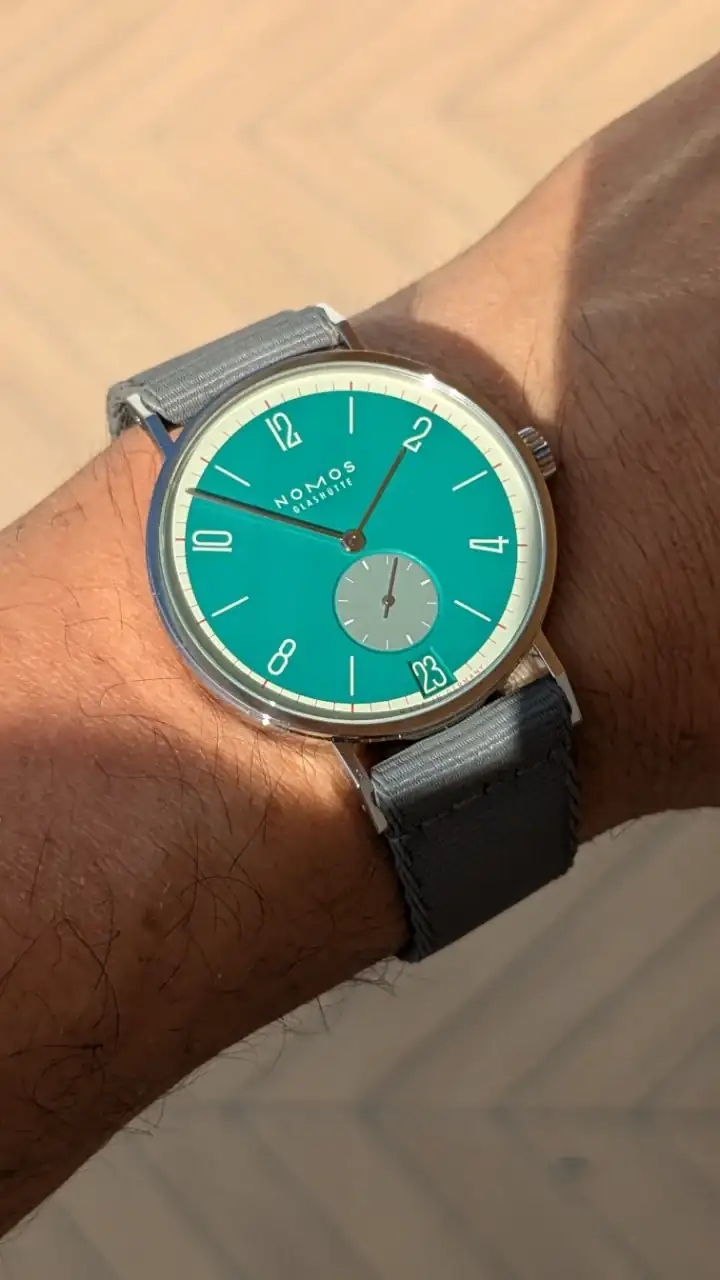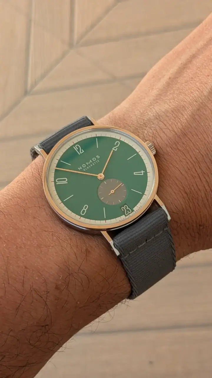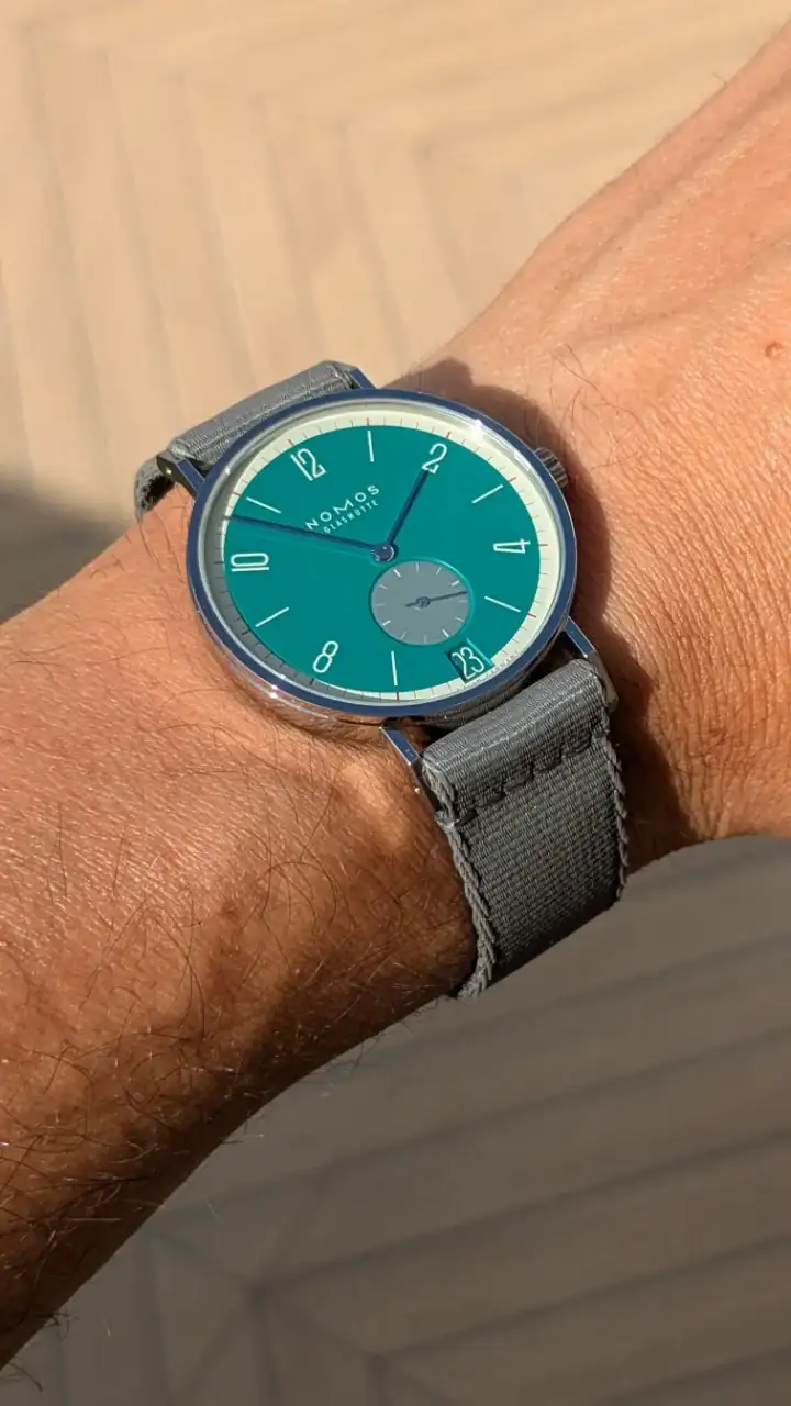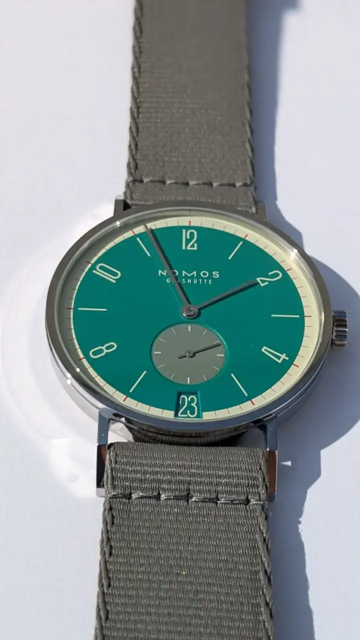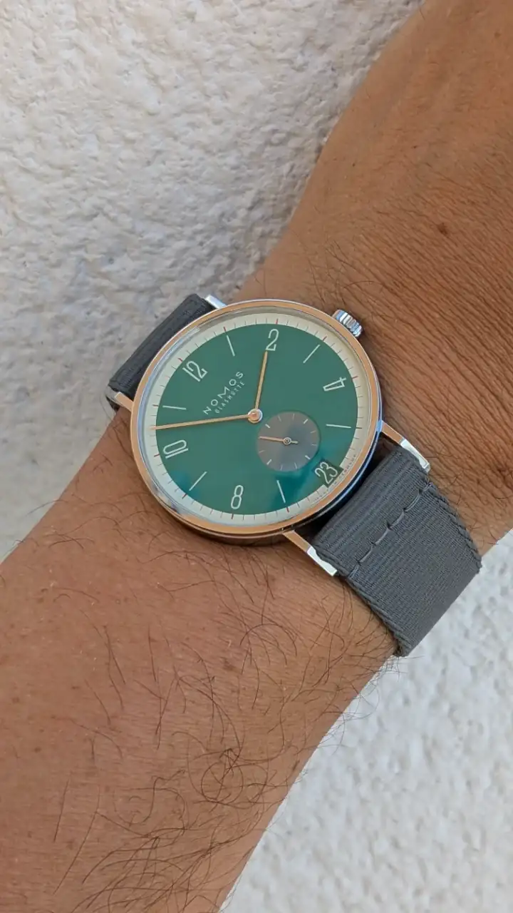 El disco de la fecha me parece también todo un acierto. Nomos se nota que ha puesto empeño por esta edición de 175 aniversario, en la que incluso ha rebajado el precio unos 400 € respecto al modelo normal, y presentando 31 colores como podéis ver en el otro hilo que pongo arriba.