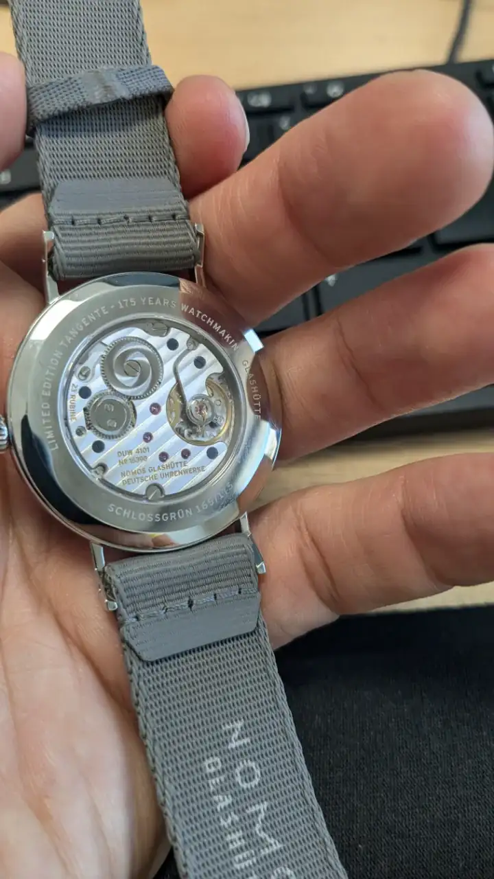 Pero seamos honestos, si este reloj es exactamente igual a otro que ya tienen en catálogo, y por el mero hecho de hacerlo conmemorativo de algo, se cambian los colores en el dial y por encima se le baja el precio..., me parece una absoluta falta de respeto a todos sus clientes en general, y en particular a aquellos que en su día pagaron de más por lo que Nomos vendía.