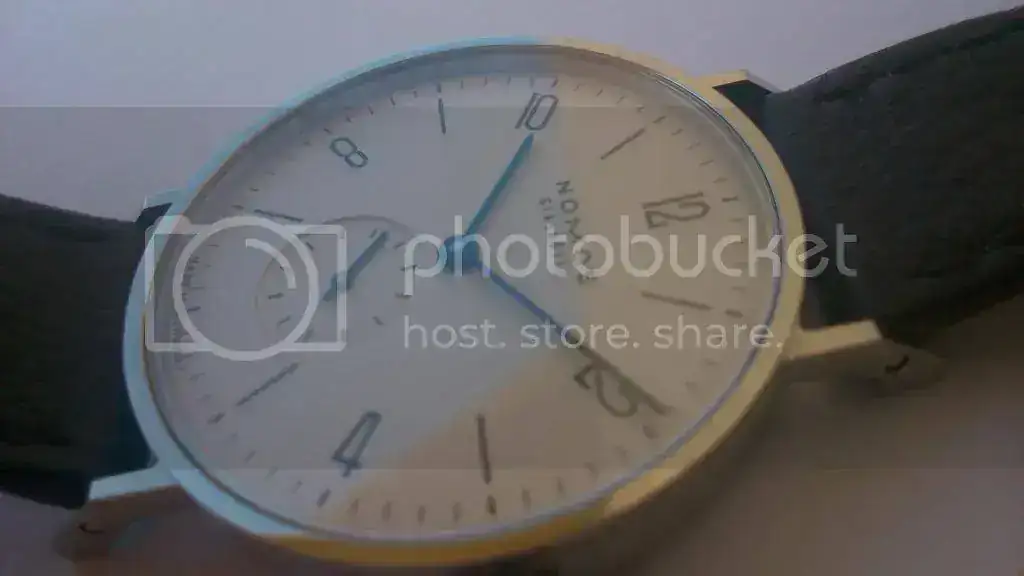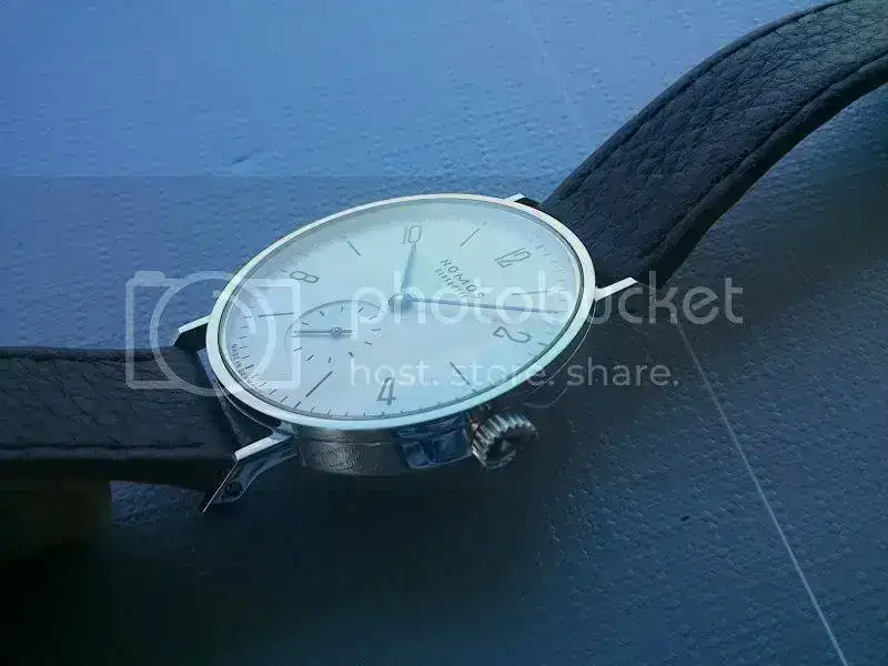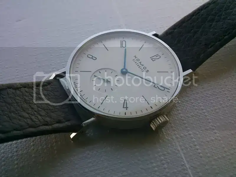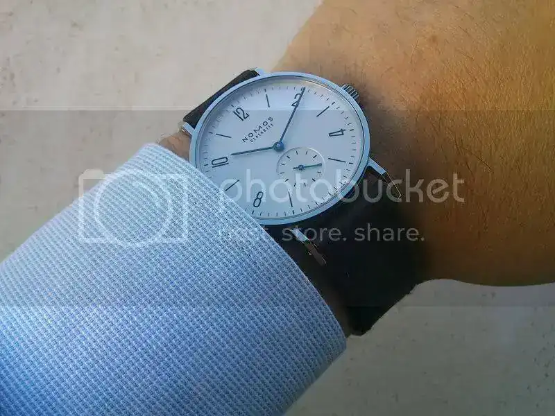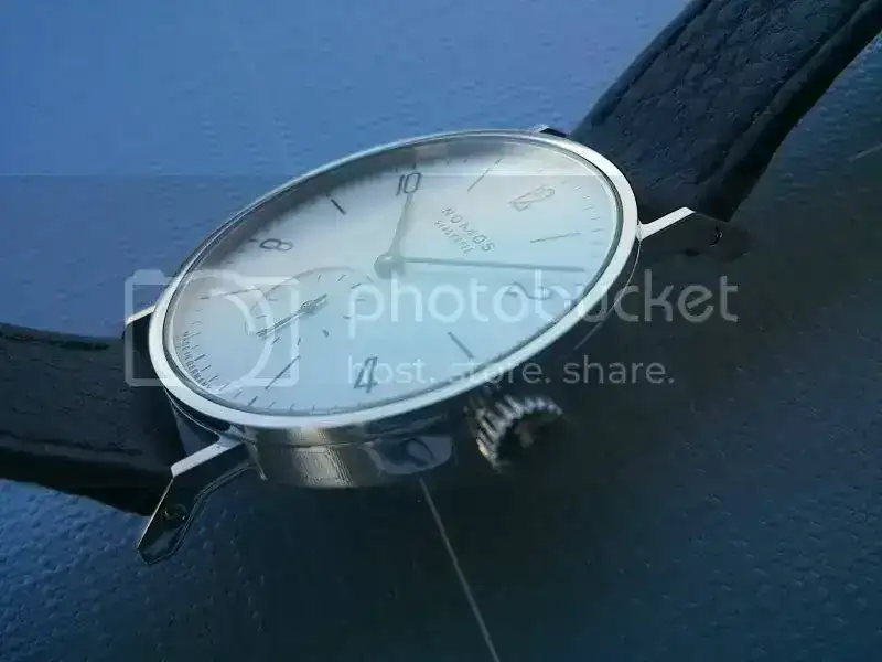 Precioso reloj manufactura alemana de la casa Nomos. Su tamaño de 35mm (pero sin apenas bisel) y sus 6,2mm de altura lo convierten en un reloj elegante y discreto (si se busca un reloj llamativo este no es el adecuado), perfecto para los que tienen que ir elegante día a día en su trabajo. En las fotos que se ve de mi muñeca como ejemplo de cómo queda en 17 y medio.