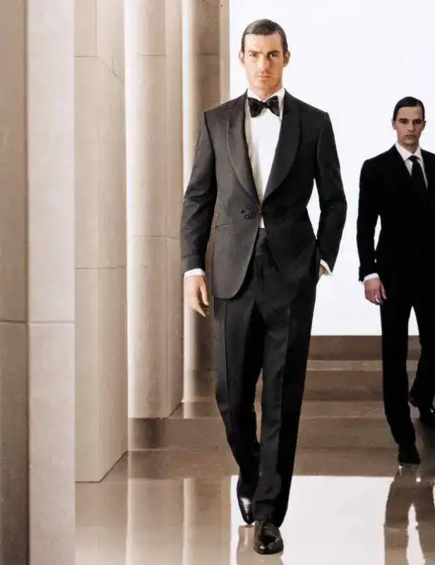 El esmoquin, al igual que el Chaqué data de la Gran Bretaña del siglo XIX. En inglés se conoce como “Tuxedo” y es muy usado en ceremonias de premiaciones, cenas de gala de congresos, etc...