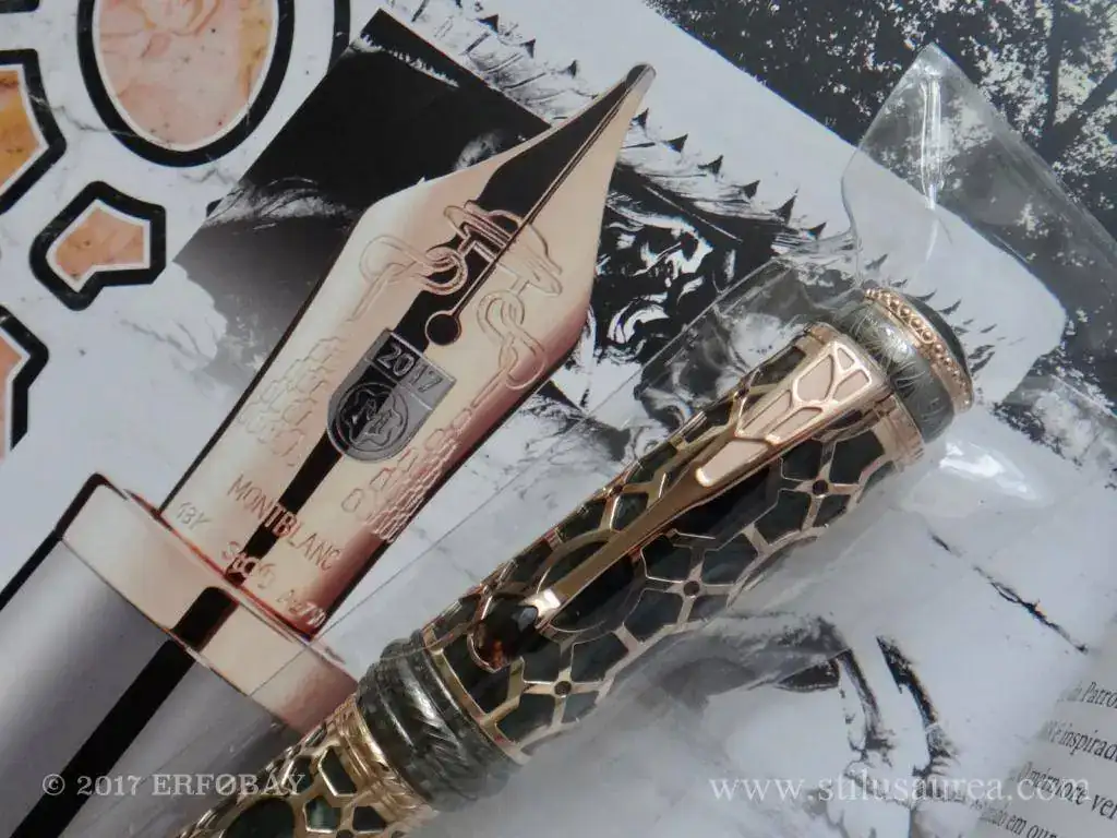 a) La Montblanc Unicef Doue: es una 145 con capuchón y culote de platino, de cartucho/convertidor como todas las MB 145. En el capuchón lleva la letra "A" en los seis alfabetos más utilizados del mundo. Su PVP: 940 €