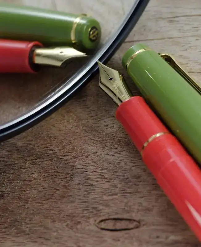 4. Aurora saca una 88 con plumín flexible en colores azul y rojo. El plumín estará marcado como FF (fino y flexible)