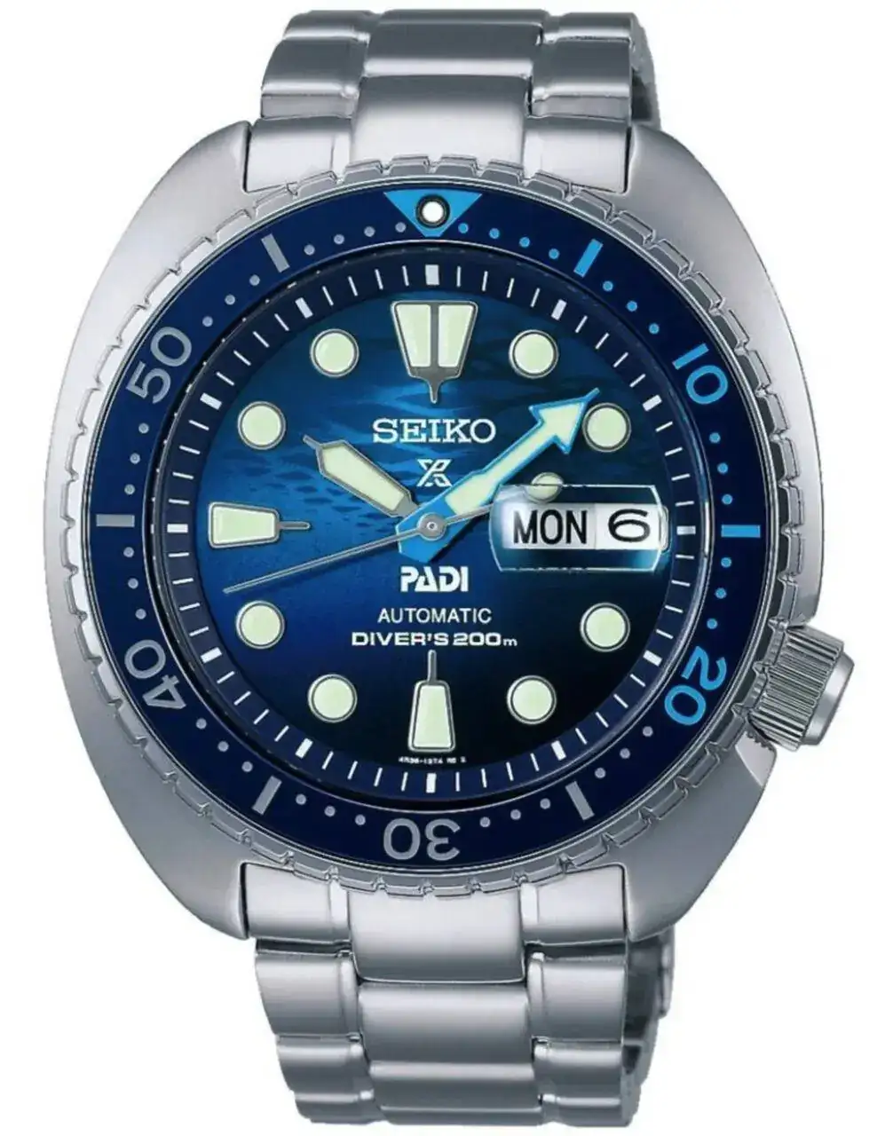 El nuevo modelo PADI SRPK01K1 en Edición Especial representa el hermoso azul del océano, la luz incidiendo en el mar y brillando sobre su superficie.