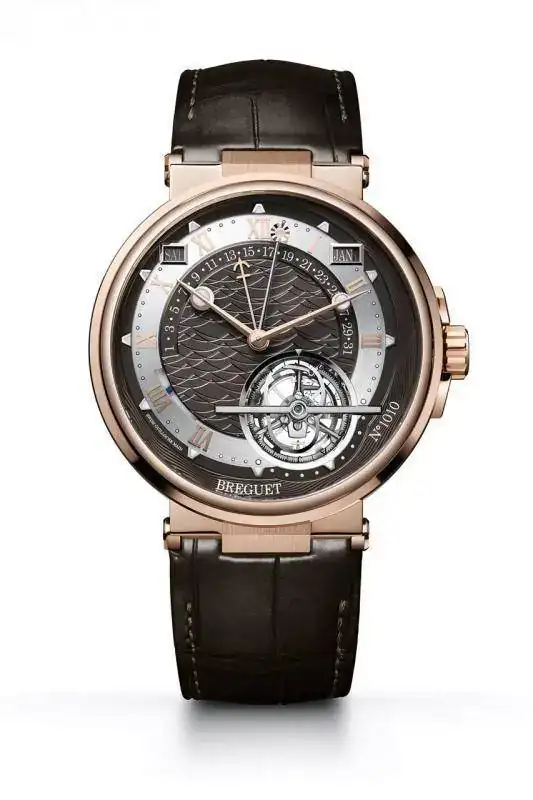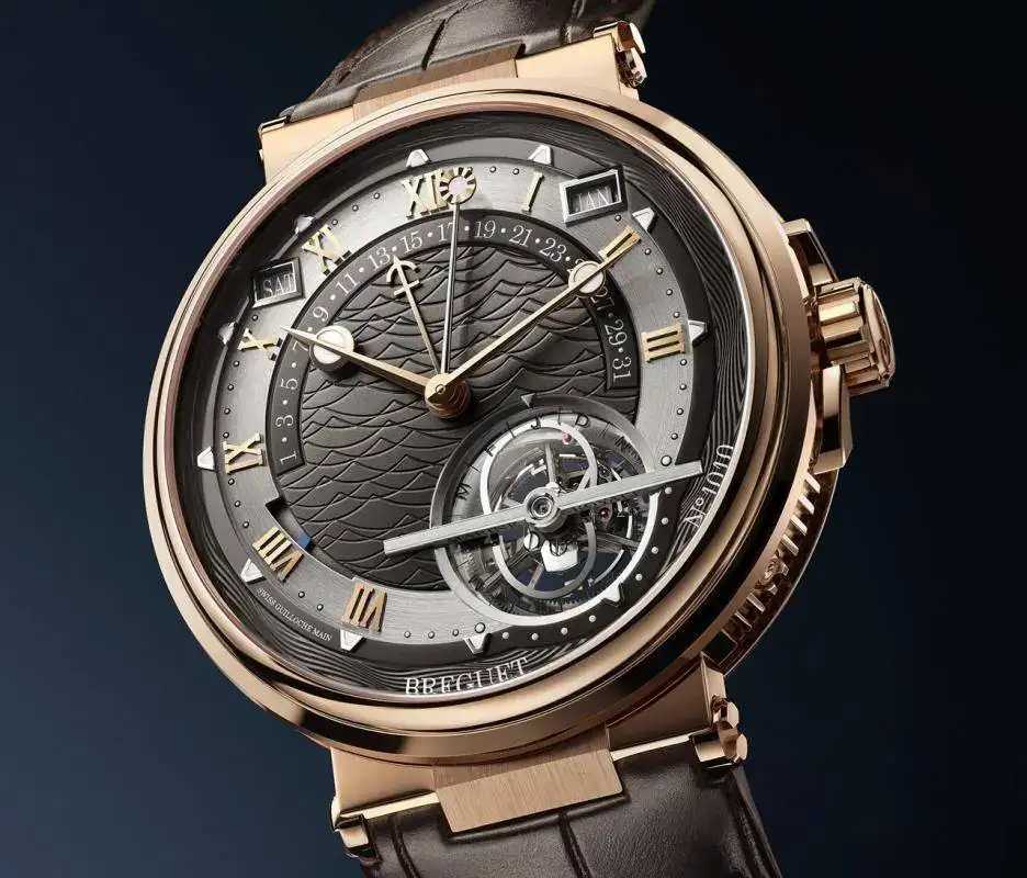 El Marine 5887 alberga un tourbillon de última generación, un calendario perpetuo con indicación retrógrada del día del mes y una indicación de la ecuación del tiempo, visible en la segunda aguja minutera. La confluencia de estos pilares históricos de la Maison en un garde-temps Marine recuerdan que en 1815 el rey Luis XVIII nombró a su fundador, Abraham Louis Breguet, Relojero de la Marina Real, convirtiéndolo así en el relojero oficial de la Marina francesa.