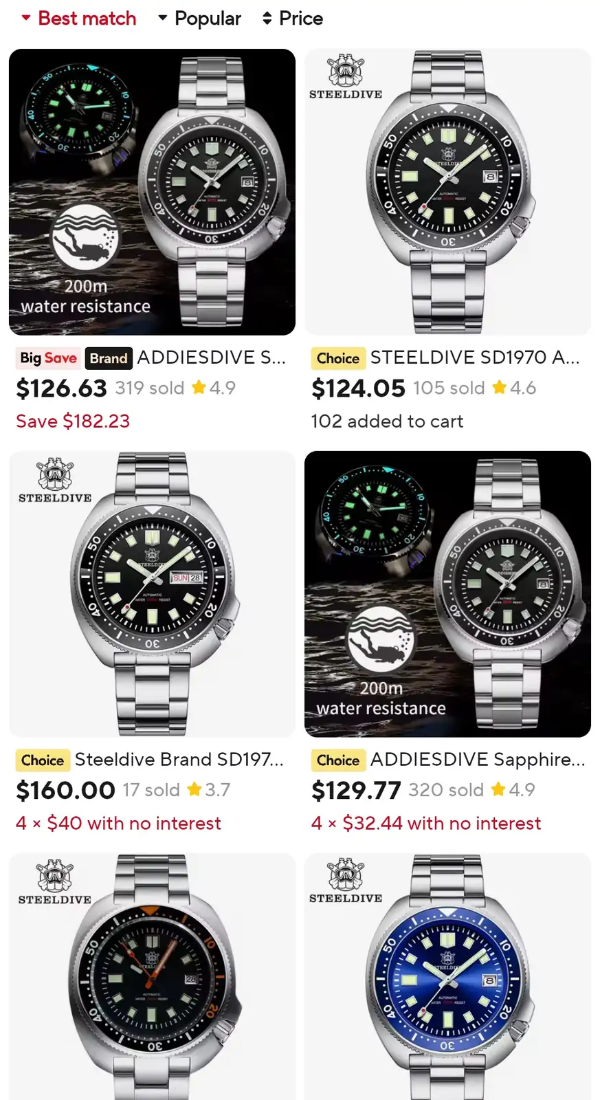 De todas formas he hecho la prueba, y he puesto en el buscador "steeldive" y me ha salido el Willard a este, precio, sin rebuscar, sin monedas , sin cupones, a pelo total :