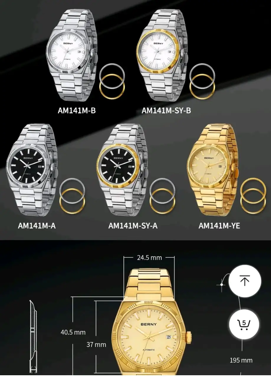 BERNY Mechanische Herren-Armbanduhr, Saphirglas, leuchtend, PT5000, goldene Uhr, AR-Beschichtung, Luxus-Herrenuhr, 5 ATM, automatische Uhren für Herren - AliExpress 1511