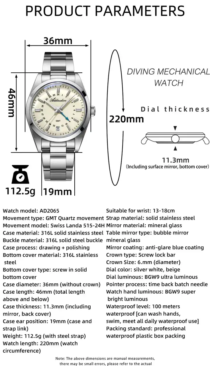 Addiesdive gmt uhr 36mm schweizer ronda 515-24h quarz armbanduhr ar beschichtung leuchtender edelstahl m wasserdichte neue uhr - AliExpress 1511