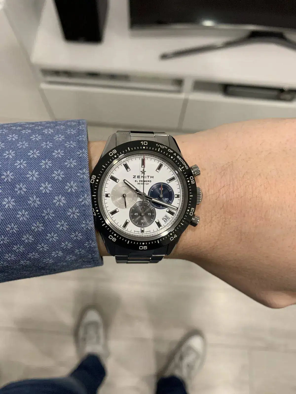 Pues no tengo ningún Zenith la verdad, pero este se parece a alguno de la competencia...., muy claramente en mi modesta opinión. Cambian los pulsadores roscados y los tres subdiales de colores, por lo demás........En la web oficial parece que se han anticipado, en foros ingleses ya lo han visto: