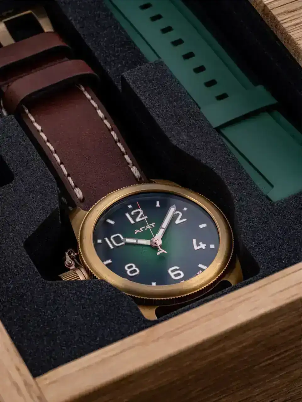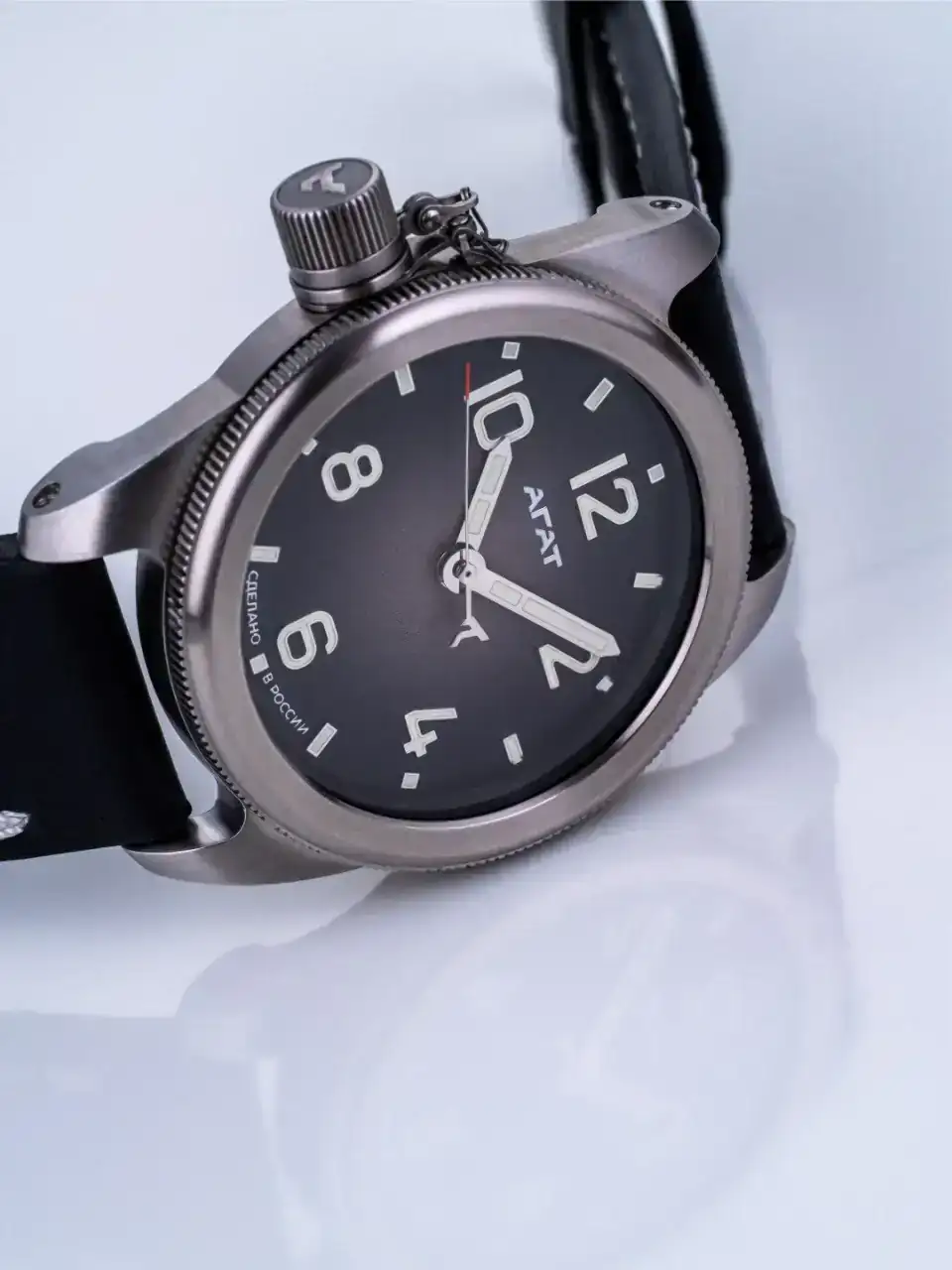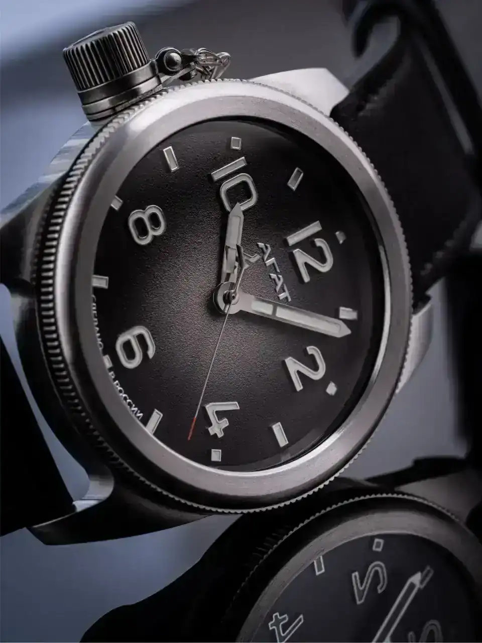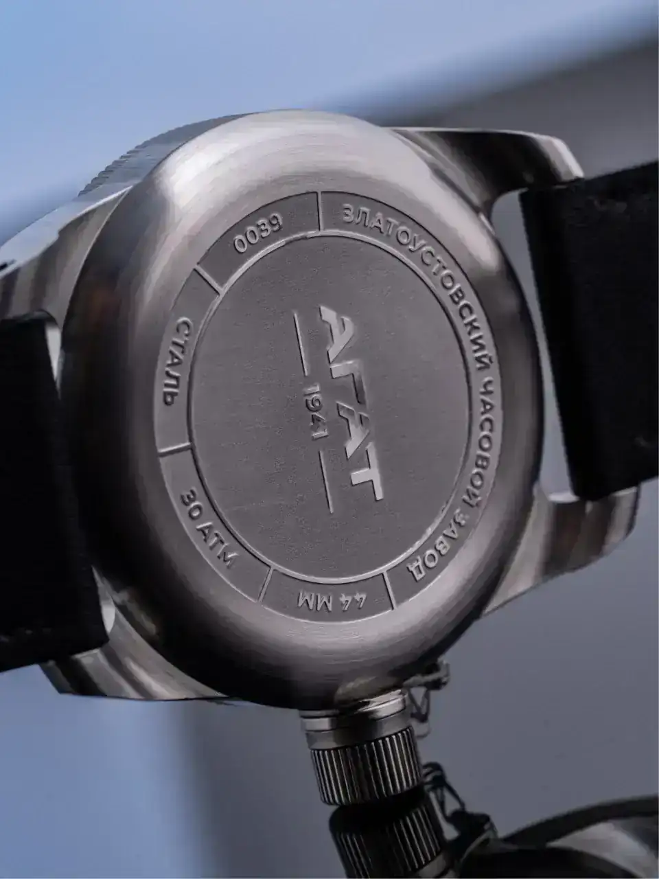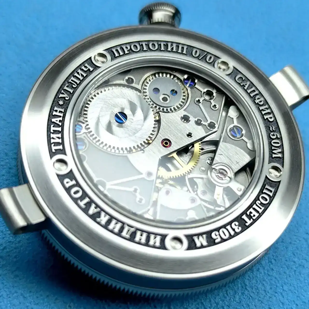 Con cristal de zafiro y caja de 42mm sin contar la corona, incorpora el movimiento molnija 3603S de cuerda manual.