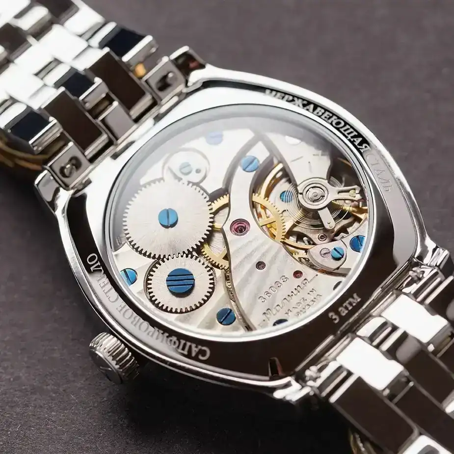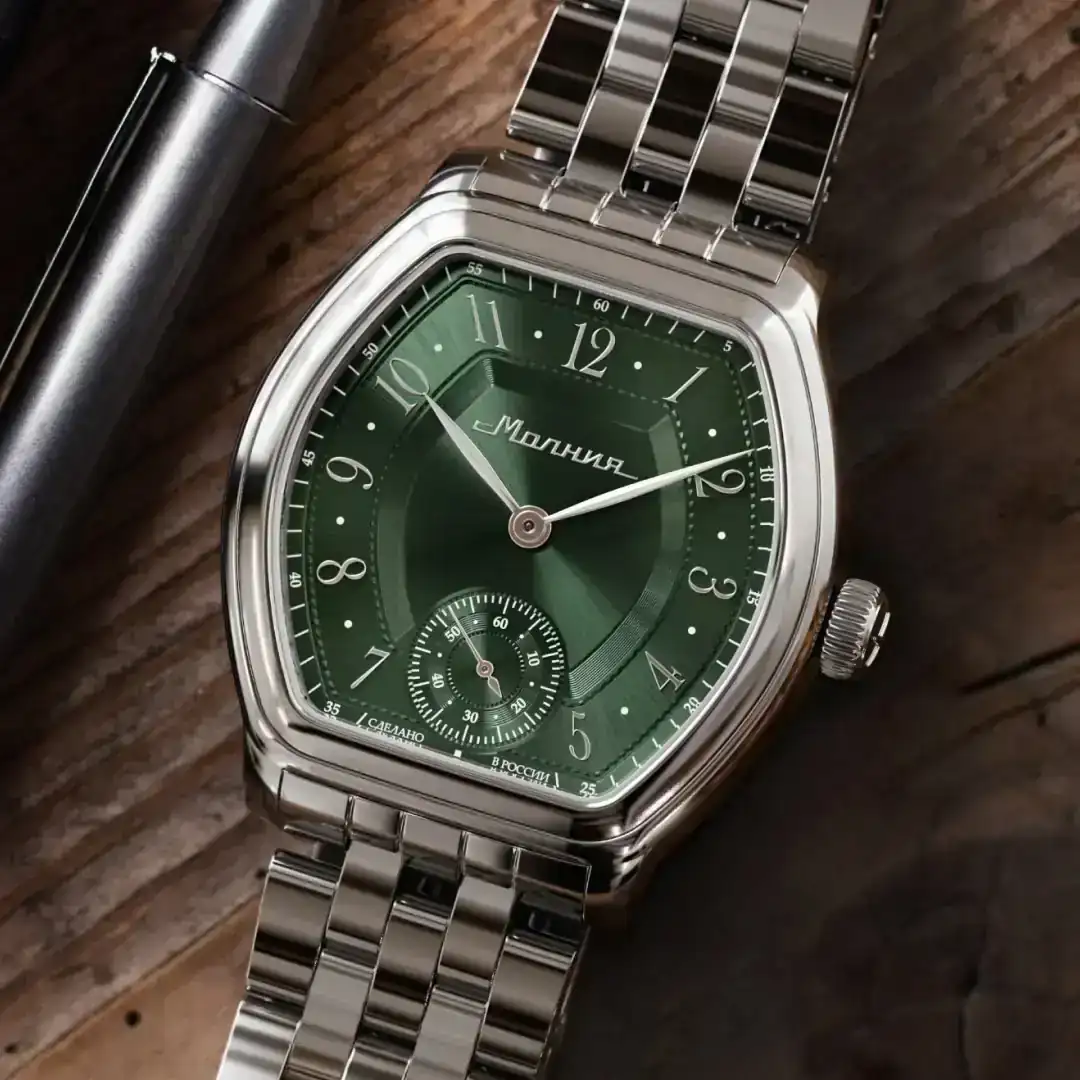 🔳 Los modelos de la nueva colección de Molnija se distinguen por la reconocible forma de barril (tonneau) de la caja, fabricada en acero inoxidable 316L. Esta forma es una referencia a una de las formas más elegantes y clásicas populares en las décadas de 1920 a 1940.