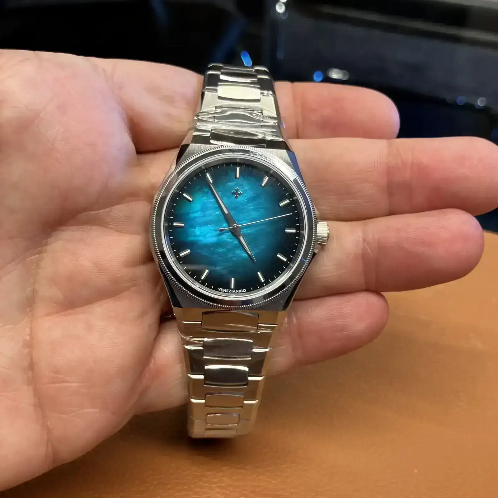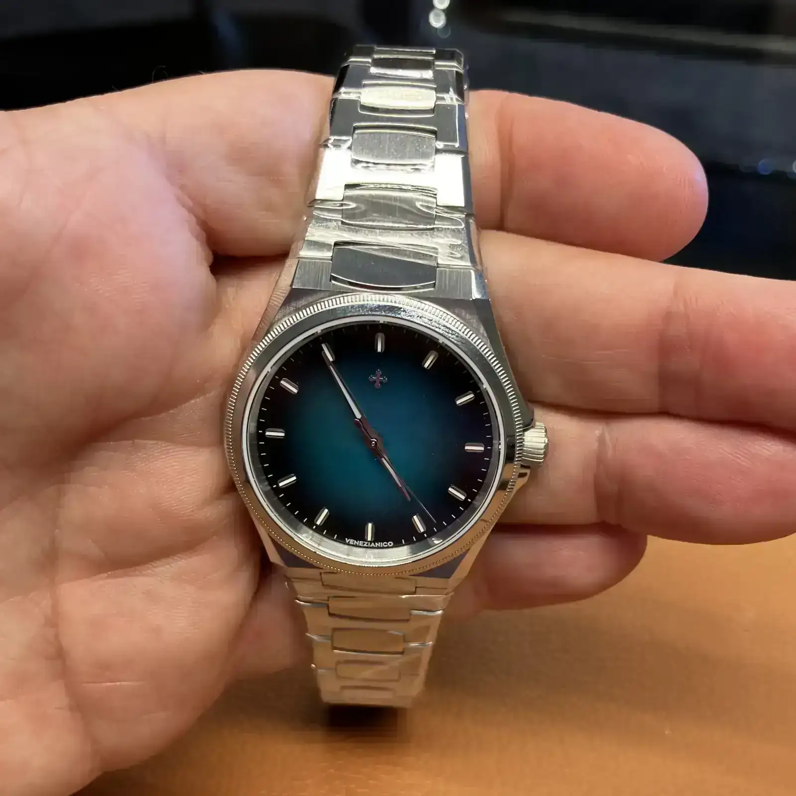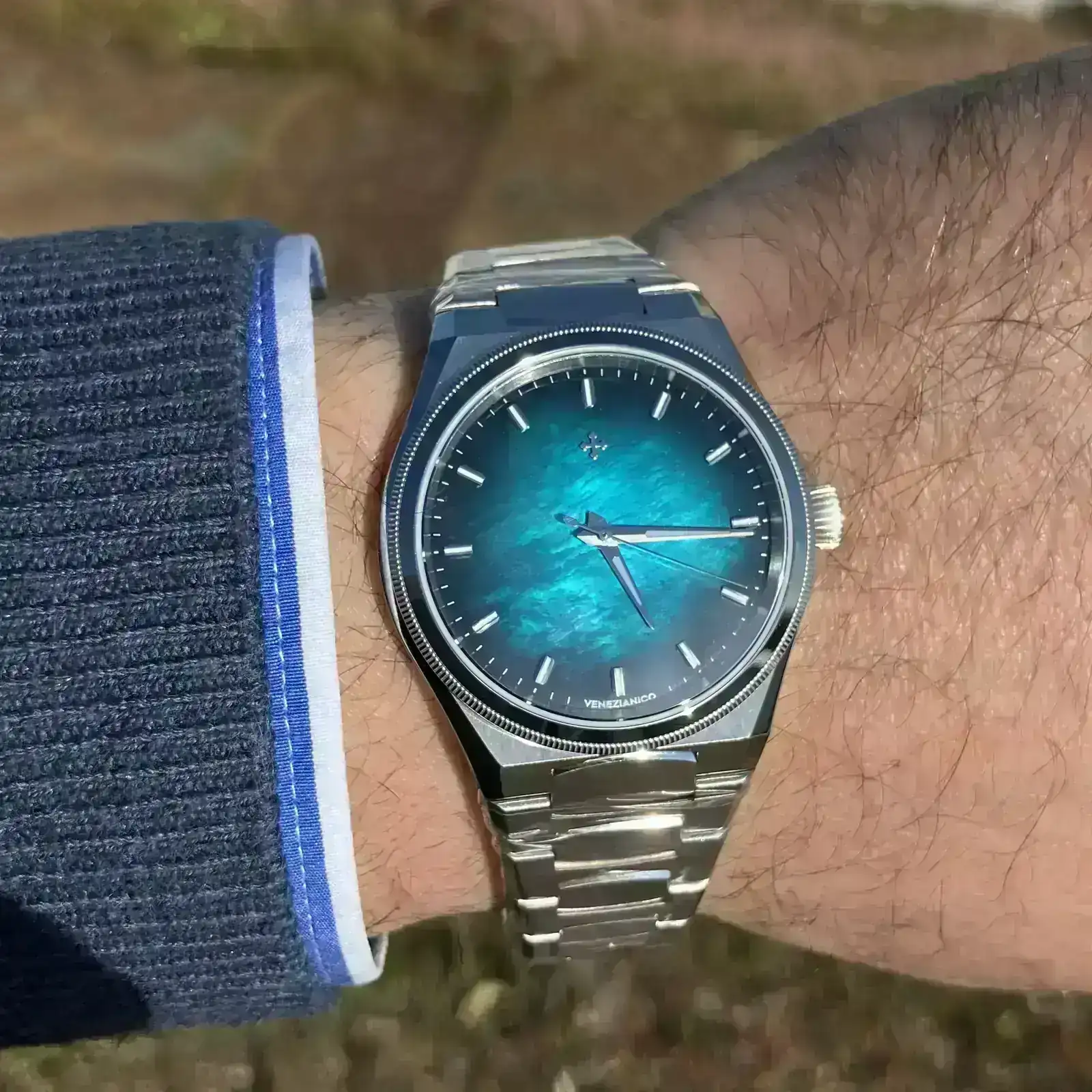Arsenale, with its integrated bracelet, perfectly combines elegance and functionality. Discover the Purple dial version on Venezianico.