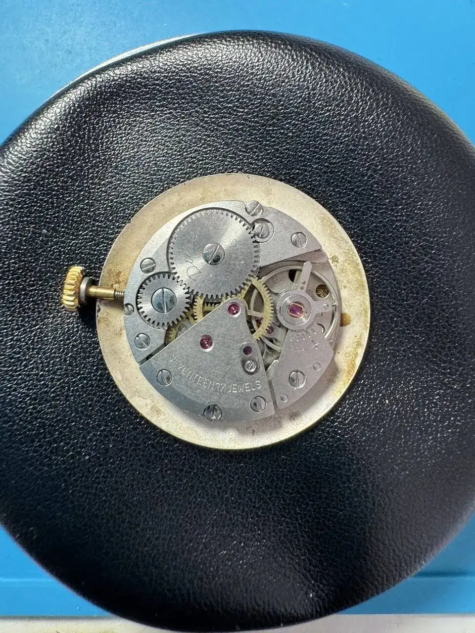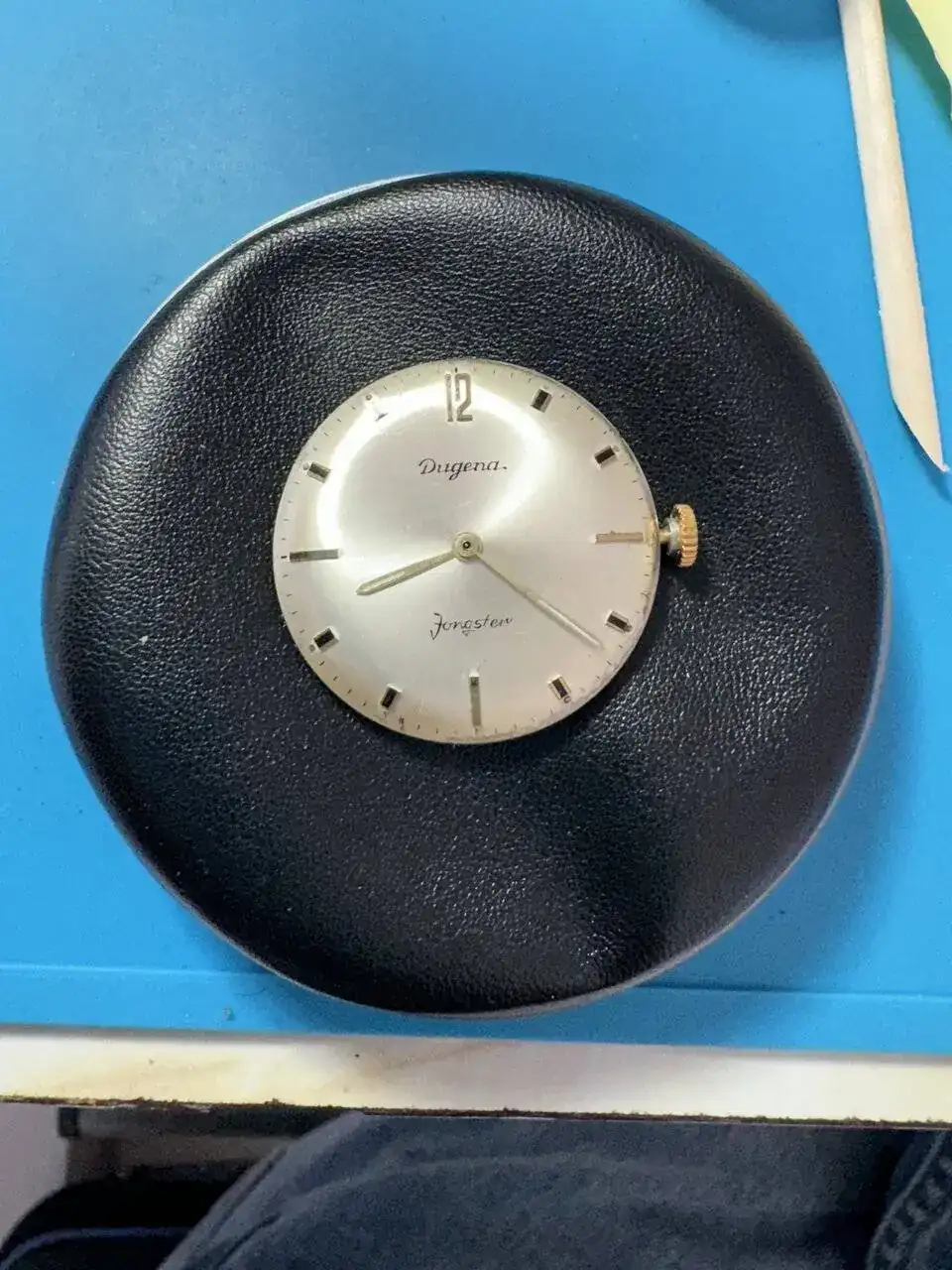 Buenas tardes compañeros, os adjunto las fotografías de mi nueva adquisición. En principio compre solo el movimiento un Durowe 450 alemán para restaurar un reloj que compre para practicar. Cuál es mi sorpresa cuando me llega el movimiento con dial y agujas. Aquí os lo enseño.