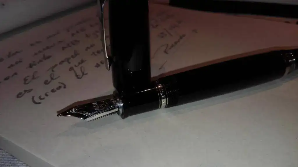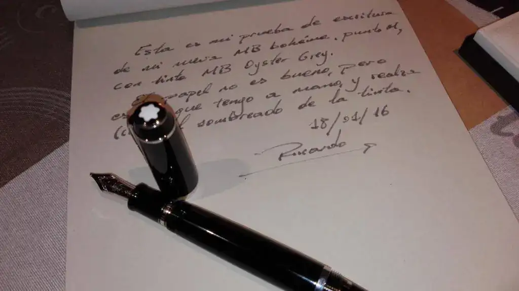 La primera sensación es excelente. Sólida y potente, según puse el cartucho (MB Oyster Black) comenzó a escribir sin más. Noto, eso sí, que el comienzo del trazo falla con movimientos hacia la izquierda (letra "c", por ejemplo). Espero que sólo sea mientras la tinta empapa bien el alimentador y el resto de los canales. Si gasto el primer cartucho y sigue el defecto tendré que hacer algo... Alguna pista?