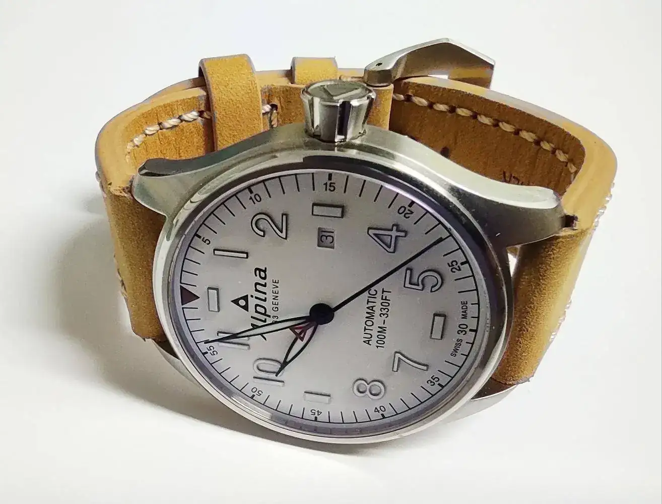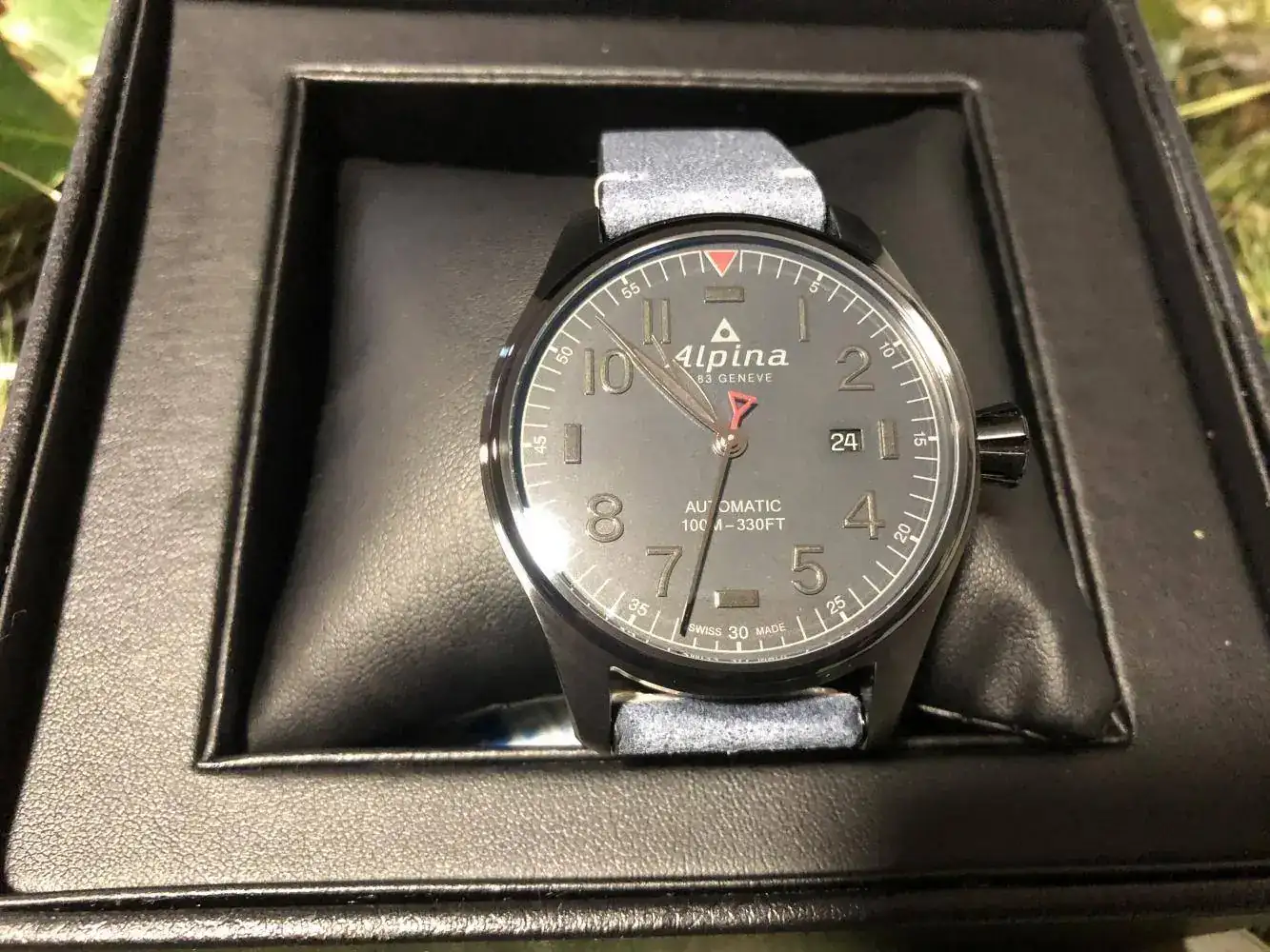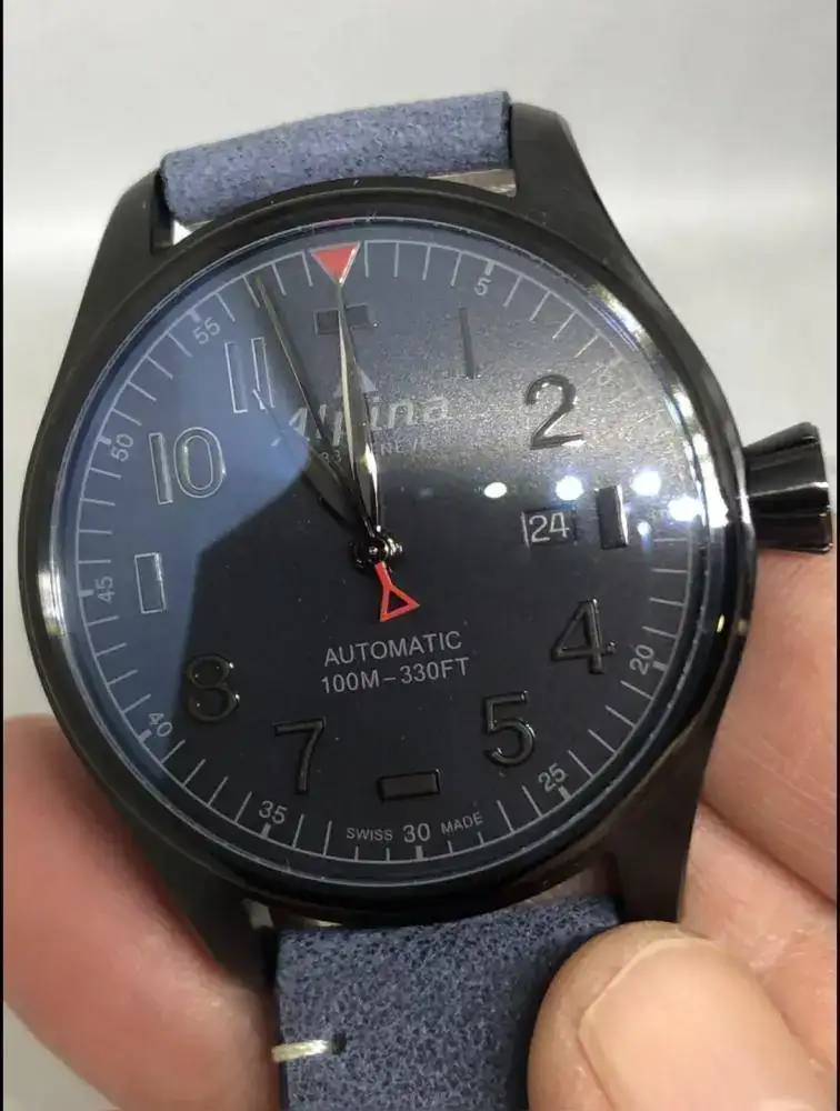 Se trata de un reloj marca ALPINA, serie Startimer especial Black Friday. El reloj es muy especial por cuanto su dial (camuflaje) y correa a juego con éste. Tiene un calibre AL-525 basado en un SW-200. Dispone de horas, minutos, segundos y fecha.