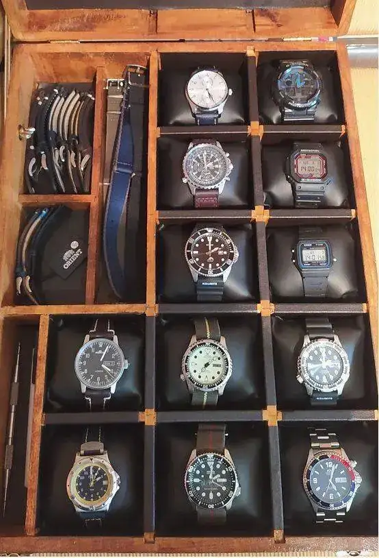 Me complace presentaros mi nueva caja, hecha por mi mismo a partir de una caja de madera casi en bruto que encontré en la basura. Era una caja como de pintor, no de los de brocha gorda si no de los otros y, en cuanto la vi, sabía que iba a destinarla a relojes.
