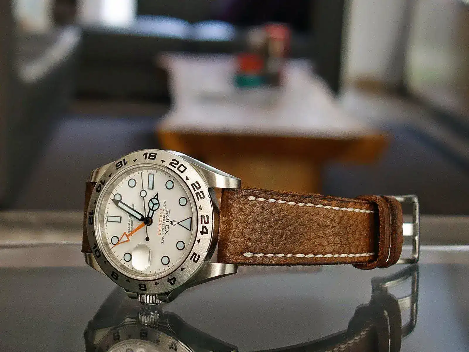 Correa pensada para la Serie Explorer de Rolex, pero adaptable a otros relojes.